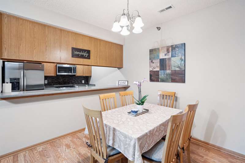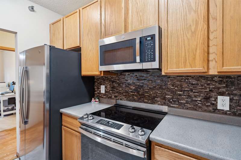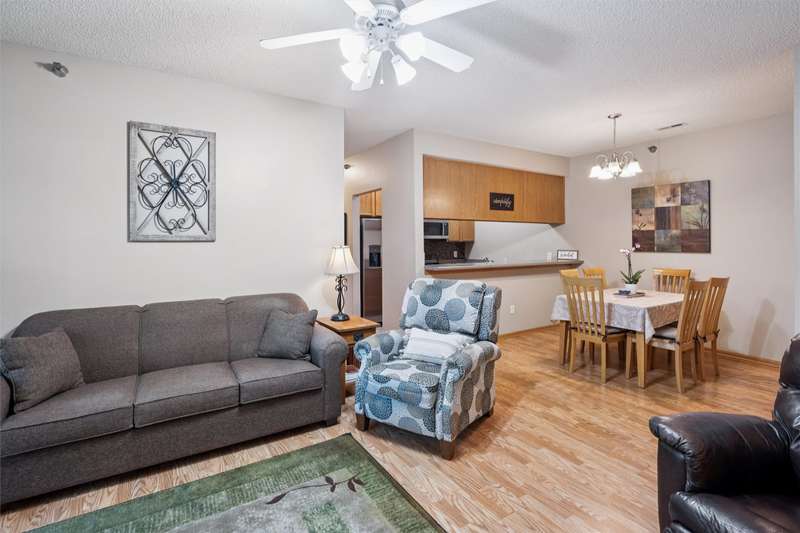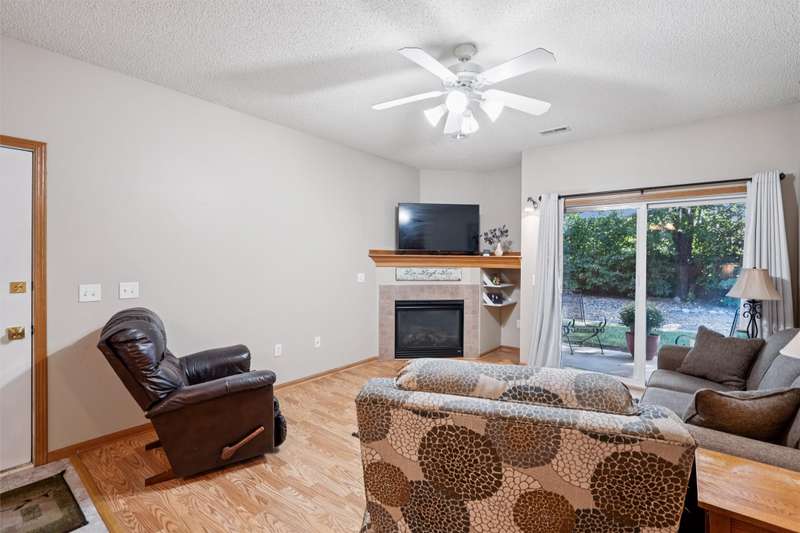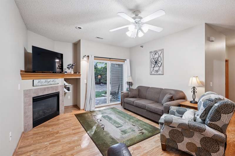 Welcome to this beautifully maintained 3-bedroom, 2-bathroom ranch-style condo offering 1,214 sq ft of open living space. Located in a peaceful community near three parks, schools and shopping, this ground-floor unit features a walk-out patio with serene green views. Inside, you'll find a spacious living room with a cozy gas fireplace, a dining area with a built-in bar, and a master suite complete with a bath and large walk-in closet. The home boasts fresh paint throughout, updated tile flooring in both bathrooms. The kitchen has been updated and includes modern appliances - all three years old or newer. Additional highlights include: Central air and gas forced-air heating. Detached 1-car garage. The roof and siding replaced 2023. Built in 2004, this condo combines comfort, convenience of no outside maintenance, and value in one inviting package.