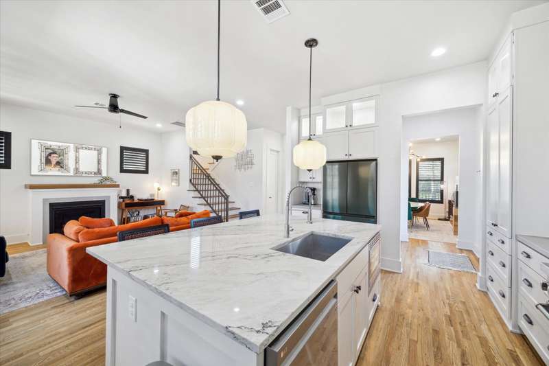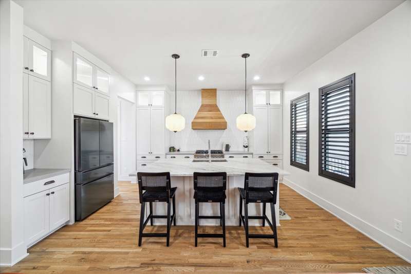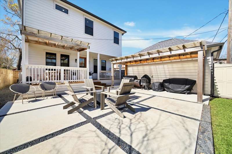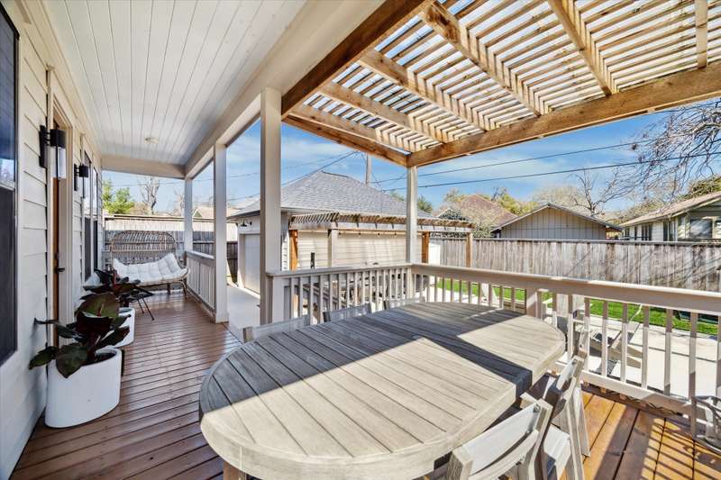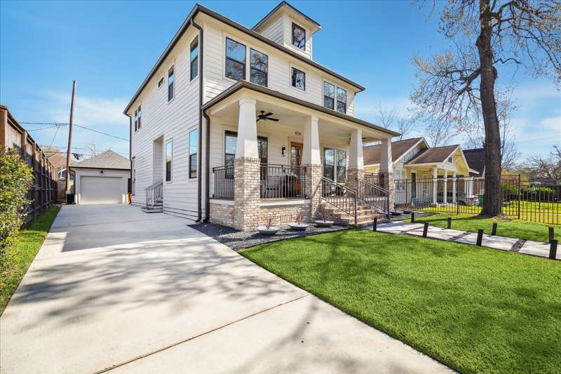 Conveniently located in the historic Eastwood neighborhood on the esplanade, just minutes from downtown, U of H, hike/bike trails, many restaurants, and more! This beautifully renovated 4-bedroom, 2.5-bath home (2021) blends modern style with classic charm. Featuring wood flooring, high ceilings, plantation shutters, and abundant windows for natural light, this home boasts designer finishes throughout. The open-concept kitchen offers quartz & marble countertops, stainless steel appliances, a walk-in pantry, an oversized island, and custom-designed cabinetry with pots and pans drawers — perfect for entertaining. With views of downtown, the spacious primary suite includes two walk-in closets and a spa-like bath with double sinks, a standalone soaking tub, and a separate shower. Both front and back porches are covered, creating additional spaces for entertaining. The backyard has a mix of hard-scaping and green areas. You will also find the 1.5 car garage, currently used as a man-cave!