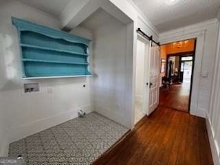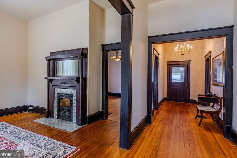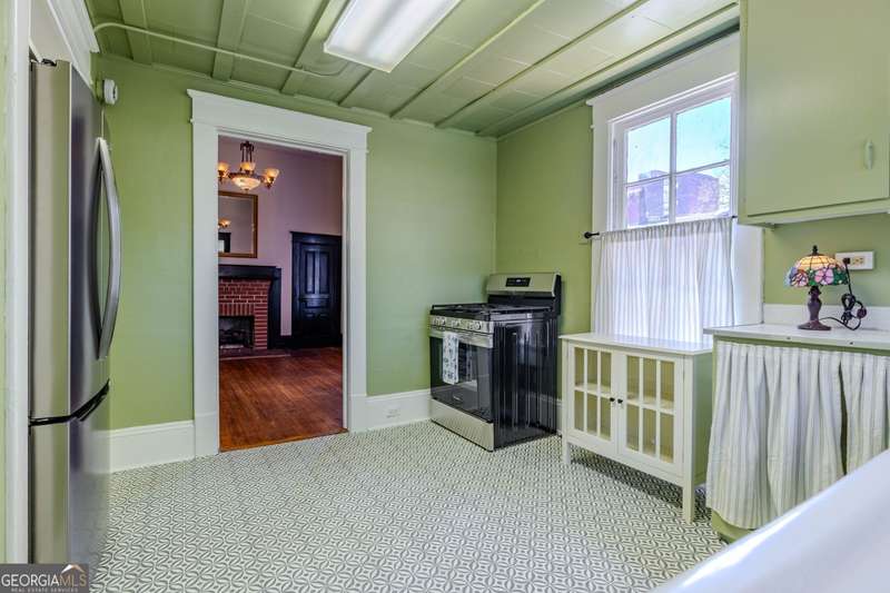 Must see for charm of older home. Beautiful original hearty pine floors. 11 ft ceilings Freshly painted inside and out. Original porcelain sink in excellent condition with drainboard. 2 bedrooms, large bathroom, half bath, laundry area and 39 ft hallway. Full bath, half bath, laundry area remodeled with new plumbing throughout home. New Frigidaire stainless steel french door refrigerator and gas stove. 31 ft wide concrete porch with swing. Concrete driveway with turnaround in large fenced back yard with storage barn. Centrally located near tennis, shopping, grocery stores, restaurants, and rivers. Don't miss this opportunnity to see this beautiful, well maintained home.