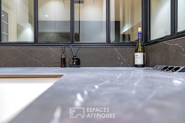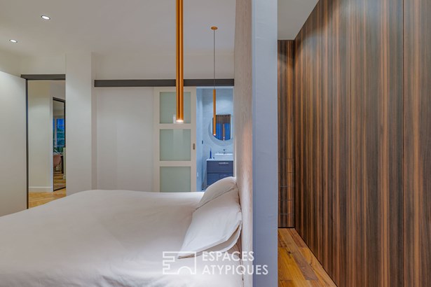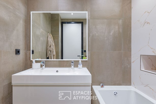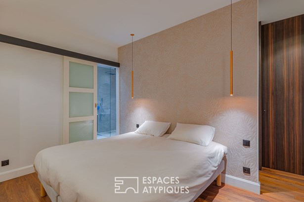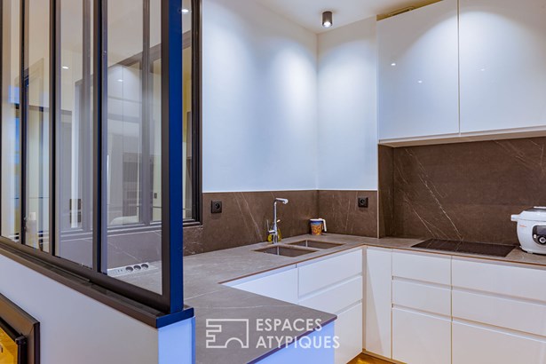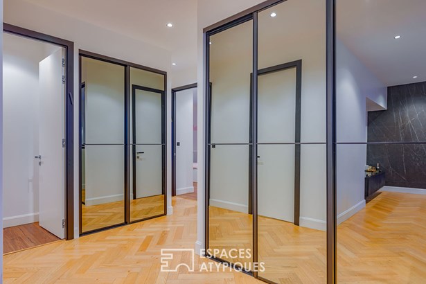 Located in a beautiful 1950s building, renovated in 2022, this 3-bedroom apartment offers 90 sq m of living space (Carrez law). Bathed in natural light, it features a 32.5 sq m rooftop terrace facing south over the courtyard, perfect for relaxing outdoors.