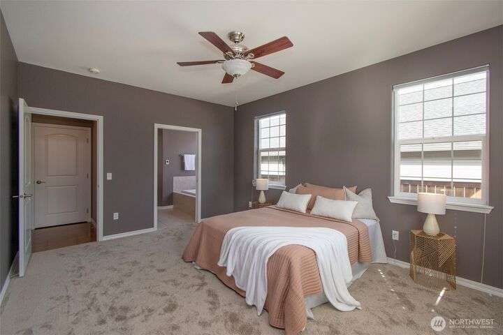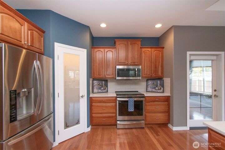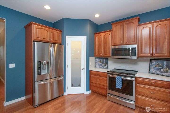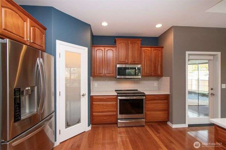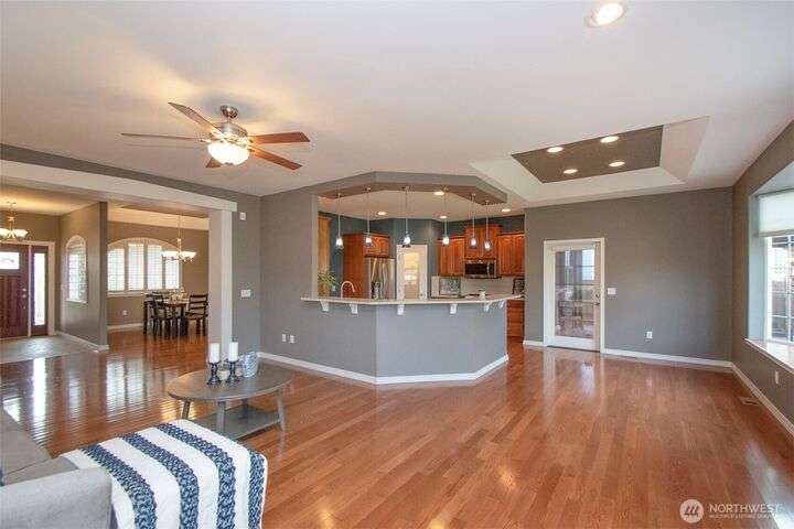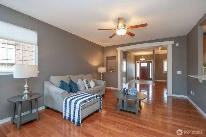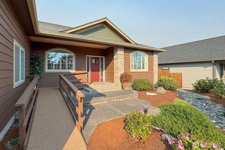 MOVE IN READY! Check out this wonderful home in Cherry Blossom Estates with 3 BR & 2 BA & 1,947 sq ft with hardwood floors, tile, & carpeted bedrooms. Kitchen has a breakfast bar, quartz counters, cherry cabinetry, walk-in pantry, s/s appliances, eating area & formal dining room with a tray ceiling. 9’ ceilings with crown molding, arched windows, several art niches, & ramps to the front & back doors are some of the other features. Primary bedroom has walk-in closet with tub & shower & double sinks. Out the back door step out to the pergola-covered patio in the fenced backyard, complete with garden shed & raised garden bed. A timed sprinkler system makes upkeep simple. Close to shopping - Costco, Home Depot, medical, & coffee stands.
