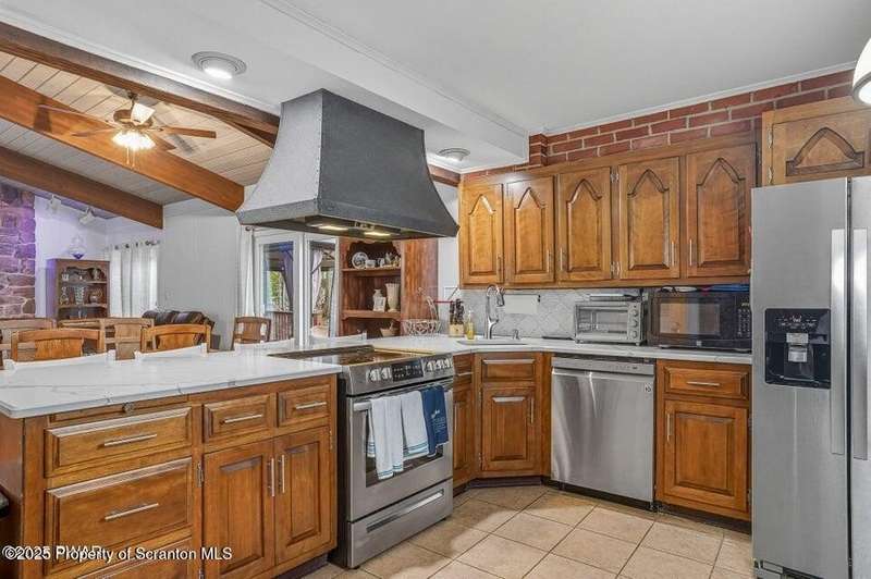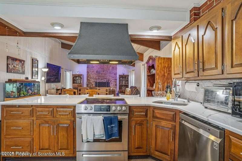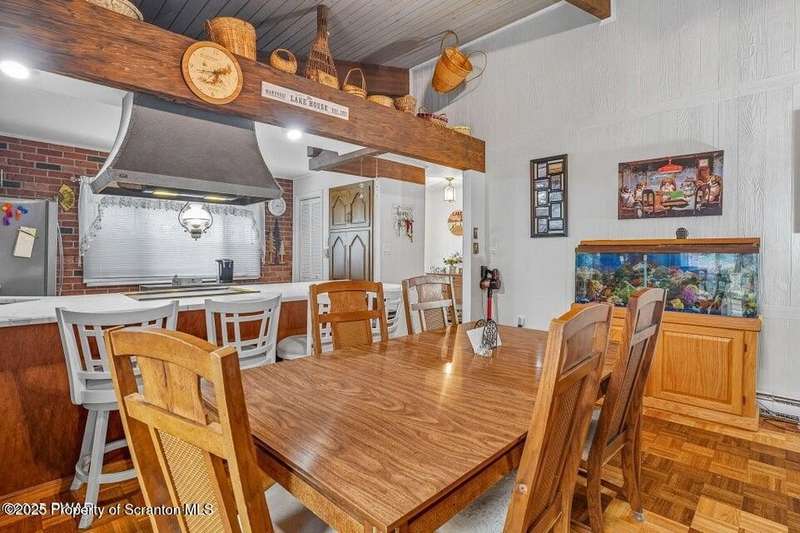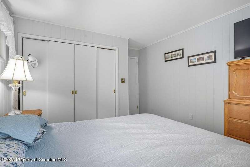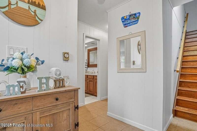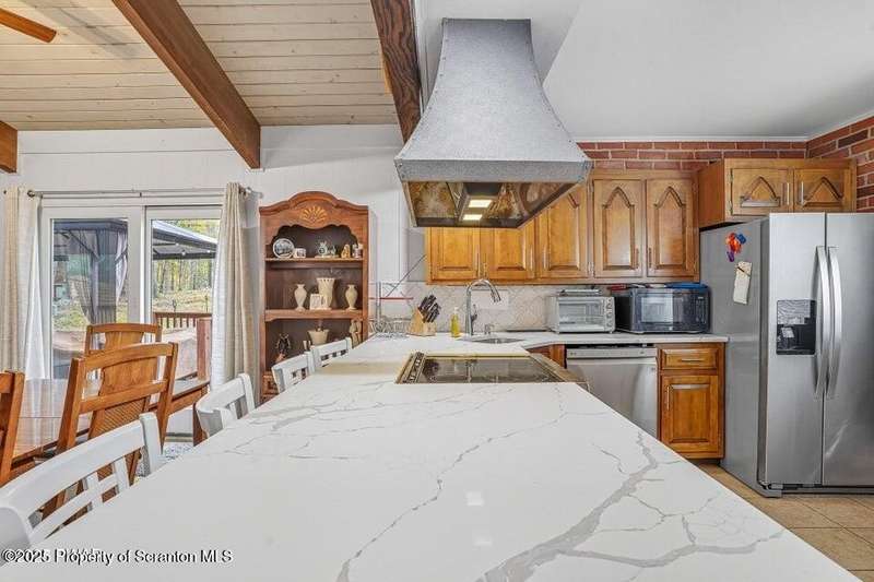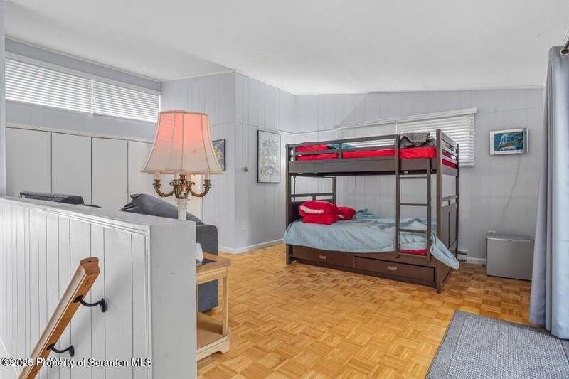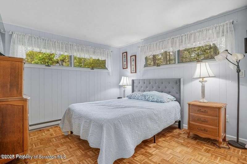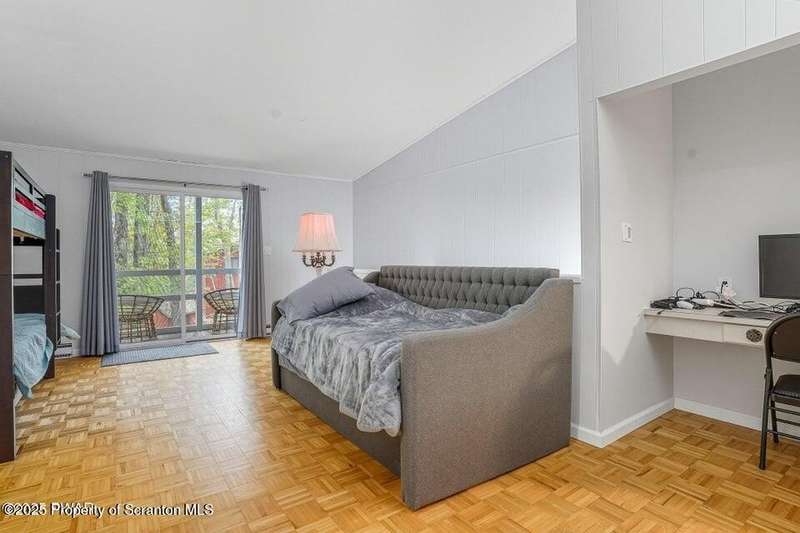 This stunning contemporary-style residence in Wallenpaupack Lake Estates seamlessly blends modern comfort with outdoor leisure, having undergone significant upgrades to elevate its appeal. Featuring three spacious bedrooms and two fully renovated bathrooms, the home offers an open floor plan with a cathedral ceiling in the living room, where a cozy, newly-installed wood-burning fireplace adds warmth. The entire interior has been freshly painted, with refinished wood floors and a completely updated kitchen boasting new countertops, backsplash, and appliances. A new washer and dryer complement the modern amenities. The primary suite includes a private balcony with scenic views, and both bathrooms have been fully renovated with contemporary fixtures. Outdoors, the expansive wrap-around deck has been stained, select boards replaced, and a new hot tub and fire pit area added for ultimate relaxation. A newly-built gazebo enhances the outdoor living space, while new gravel paths and an upgraded driveway improve both curb appeal and functionality. The home also features a brand-new roof, a newly-installed septic pump, and upgraded insulation and a vapor barrier in the crawl space for improved energy efficiency. Residents enjoy access to community amenities such as indoor and outdoor pools, a fitness center, tennis courts, hiking trails, a skate park, RV parking, and camping facilities. The community also offers lake rights to Lake Wallenpaupack, perfect for boating and water activities. This property offers a rare opportunity to own a beautifully updated contemporary home in an amenity-rich community, all set amidst the natural beauty of the Pocono Mountains. This property is also being sold with the extra lot next to it included.