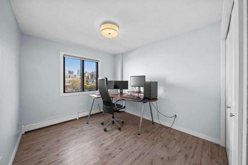Welcome to Kensington Plaza! Your new home in the heart of one of Calgary’s trendiest neighbourhoods, Kensington. Located just steps away from some of the city’s top restaurants, eclectic shops, cozy cafes, and convenient transit options. This quiet east-facing unit offers DOWNTOWN VIEWS from the cozy patio and abundance of natural light. This recently updated 2-bedroom, 1-bathroom unit is a perfect blend of modern living and vibrant city life. The kitchen features sleek stainless steel appliances. The additional den is a great flex space for either an office or another storage. The 4 pc bathroom is well equipped with additional storage and sleek finishes. For outdoor enthusiasts, enjoy a short walk to the Bow River, where you can explore expansive walking and biking paths. With downtown just a leisurely stroll away, this condo is the ideal choice for those seeking a vibrant lifestyle in a prime location. The unit also has an assigned covered parking stall that is equipped with plug in for added convenience. This condo has low fees which include utilities such as heat, water and sewer. Contact your favorite realtor to book a showing!