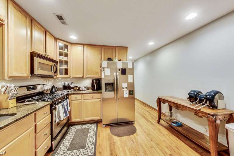 This 1,100 sqft English garden unit with loads of light and charm shows great! The entire unit was recently rehabbed with new drywall and has been freshly touched up throughout- both functional and aesthetic details have been thoughtfully addressed to ensure a clean, move-in ready space. Features include nine-foot ceilings, solid oak trim and doors, wood blinds, and hardwood floors throughout. Marble and granite in the two bathrooms. Large open living room/dining room (28x12). Big eat-in kitchen with granite counters, stainless steel appliances, and maple cabinets. Spacious primary bedroom with excellent closet space. In-unit laundry and storage. Gas forced air heat with central AC. Applicant must submit to a credit and background check. Non-smoking unit.