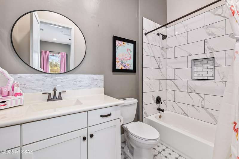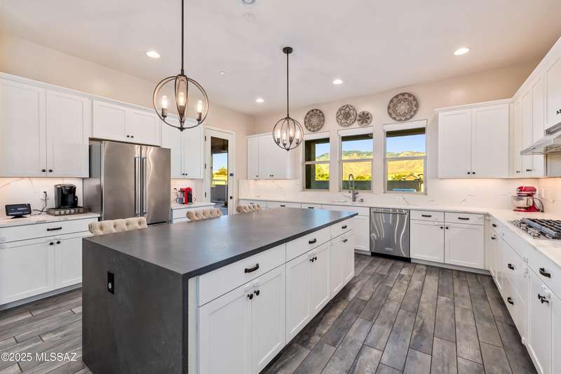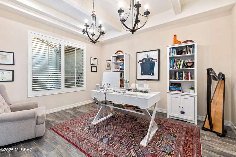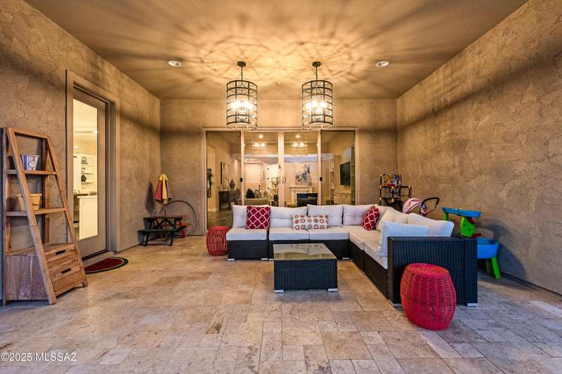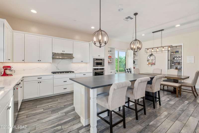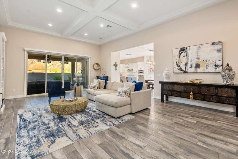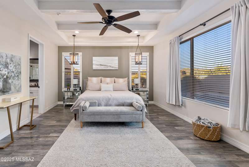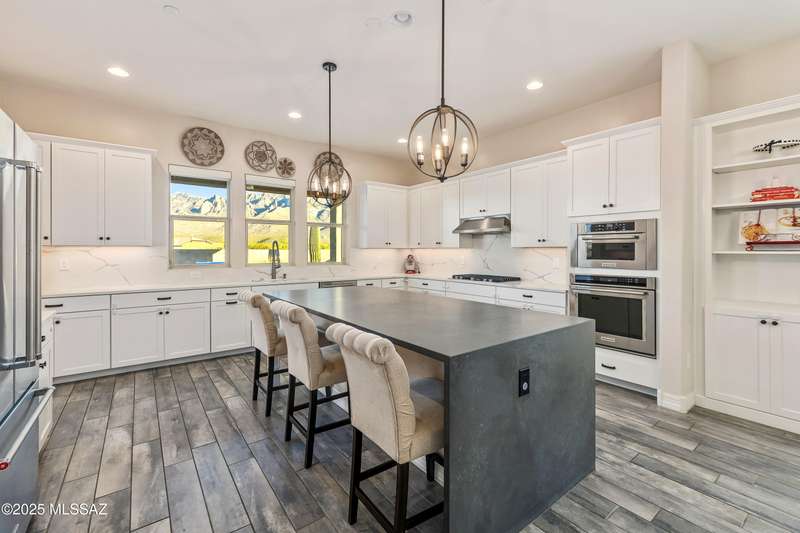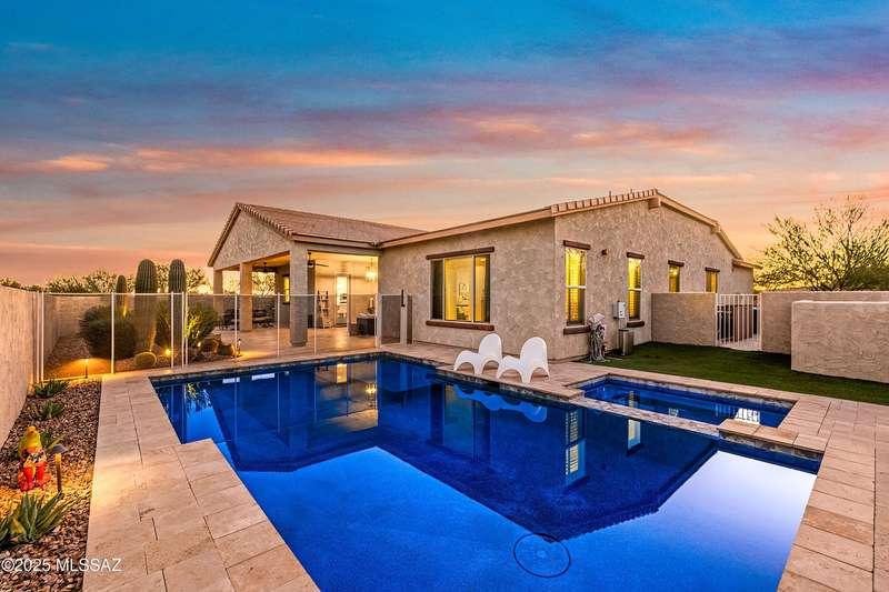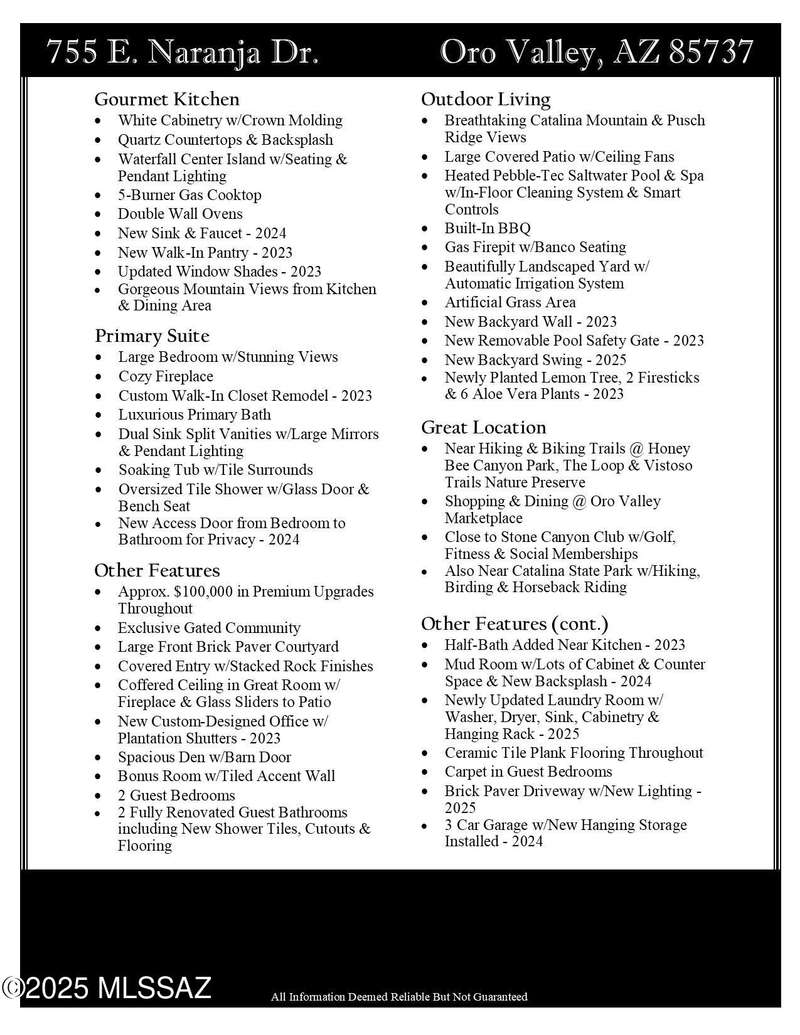 Tucked away in the gated community of Sanctuary at Silverhawke, this exceptional single-level home blends elegant design with sweeping Catalina & Pusch Ridge mountain views. With 3BR/31/2BA+office, den & bonus room & flexible 3,249sf floor plan, this residence sits on an oversized cul-de-sac lot offering privacy & tranquility. Recently renovated with about $100,000 in premium upgrades, every inch reflects elevated craftsmanship and thoughtful design. Kitchen has been elevated with a new sink and faucet, walk-in pantry and addition of a half bath, seamlessly blending convenience with design. In the laundry room, updates like a new backsplash, pocket door & modern countertop give the space a fresh, functional feel. Great room & office were also transformed