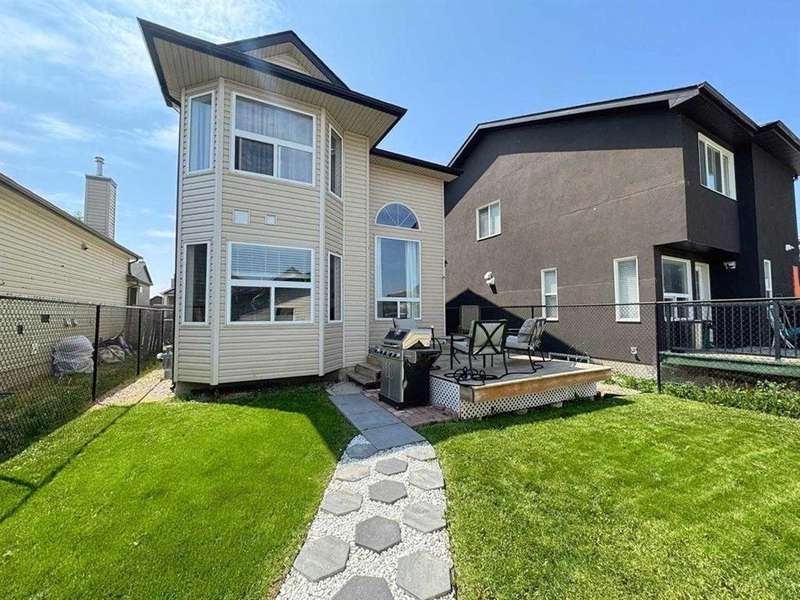 Welcome home to your delightful 2-storey, 3-bedroom home nestled in the vibrant and family-friendly community of Saddle Ridge. This detached home offers a perfect blend of comfort, functionality, and style, making it an ideal choice for first-time homebuyers, growing families, or investors seeking a well-located property. The main floor features a beautiful living room with glowing natural light, a versatile kitchen with ample cabinetry and a moveable island along with an eating area, a spacious front den for your home office or kids play area, a sizeable powder room and extremely convenient main floor laundry! When you walk up the stairs to the upper level you will notice the plush and new carpet under your feet. Walk through the upper level and you will find a generously sized master bedroom with a walk in closet, the main bathroom and two additional bedrooms which are also exceptionally spacious. The basement is extremely spacious and is waiting for your personal touch so you can design it exactly how you want it to be! Enjoy morning coffee on your front porch or step out back to your rear deck and enjoy summer get togethers with friends. You'll also enjoy having an oversided double detached garage and an additional gated parking spot beside the garage for your recreation vehicle or other cars! Situated just minutes walking distance to schools and other great community features. This home is priced to sell and will not last long. View TODAY and move in before the new school year starts!
