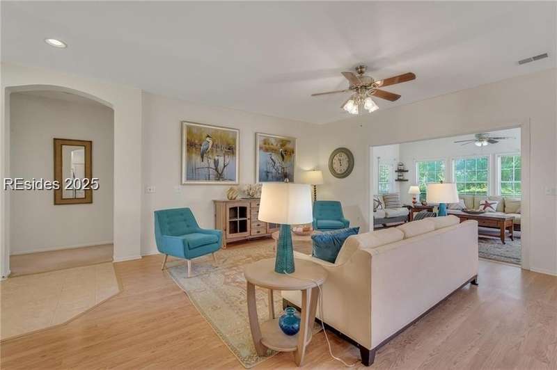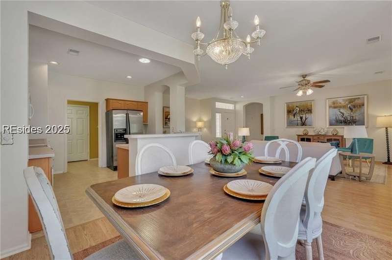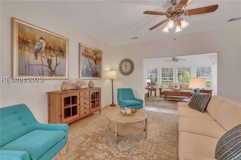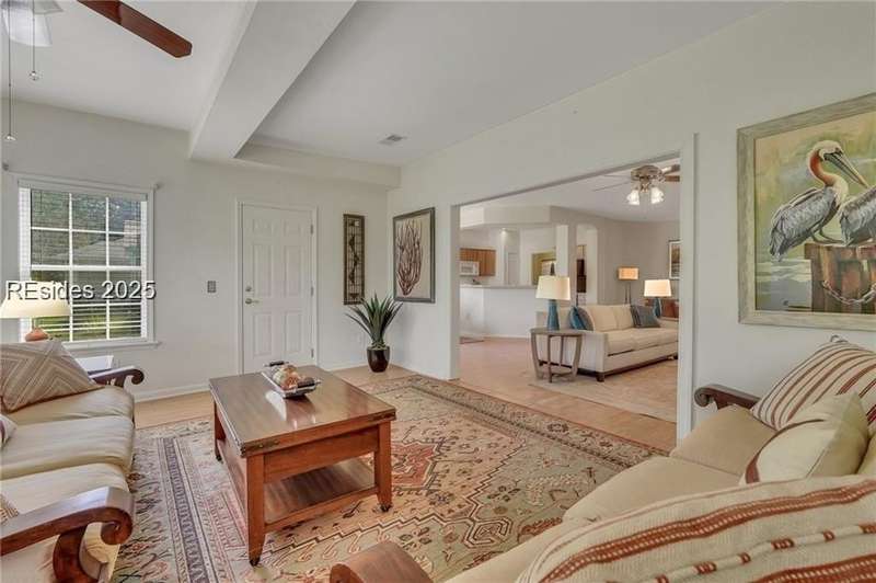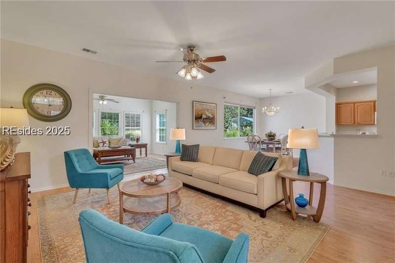 REDUCED PRICE! Nestled in the SUN CITY HILTON HEAD community, this Camden/Shenandoah 2 BD/2BA w/ flex space sits on a peaceful cul de sac. Inside, a spacious living/dining area flows into a large Carolina Room, offering serene views of the landscaped backyard. The kitchen/dining area overlooks this scenic space as well. Enjoy the patio's private retreat feeling, perfect for savoring your morning coffee. The primary bedroom boasts an en suite bathroom. Sun City Hilton Head in Bluffton, SC, is a premier 55+ community spanning over 5,000 acres, offering an unmatched resort-style lifestyle. Residents enjoy 54 holes of golf across three scenic courses, six pools (including indoor lap and leisure pools), and three fully equipped fitness centers with classes and studios. The sports park offers tennis, pickleball, bocce, softball, volleyball, croquet, and more. Social and creative outlets abound with a ballroom, 16,000 sq ft performing arts theater, arts and crafts studios, woodworking shop, billiards, card rooms, and a library. Outdoor enthusiasts appreciate the Lake Somerset and Riverbend Docks, fishing, miles of walking and nature trails, community gardens, and three dog parks. There are over 150 clubs covering everything from arts and music to technology and lifelong learning. Additional amenities include on-site restaurants, RV and boat storage, and a secure, gated environment with convenient access to Hilton Head beaches, Historic Savannah and Charleston along with local shopping, dining, and healthcare. Sun City is also expanding with a new multimillion-dollar resort style amenity center coming soon!