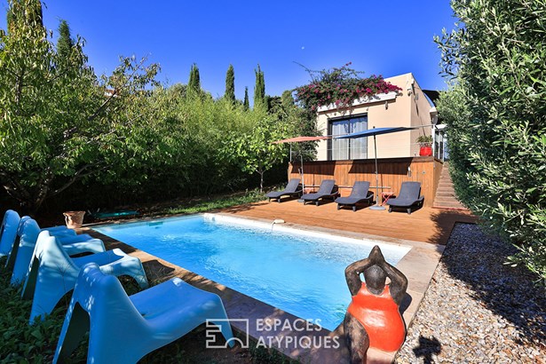 The openings accentuate the inside / outside effect to enjoy the terraces and the swimming pool in an atmosphere evoking distant exotic journeys.