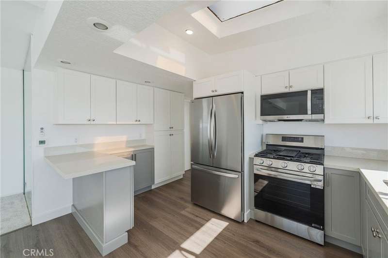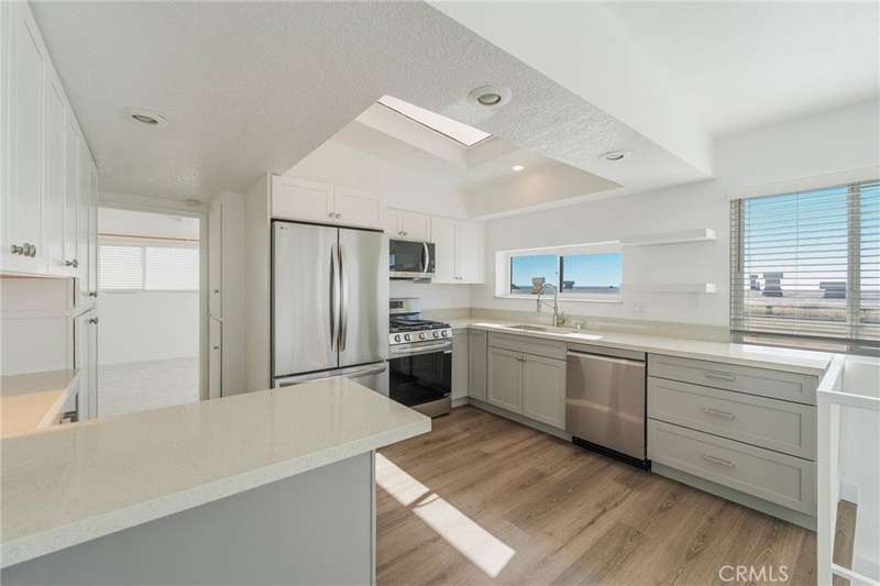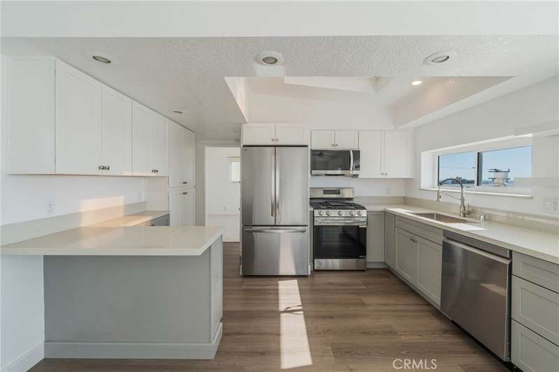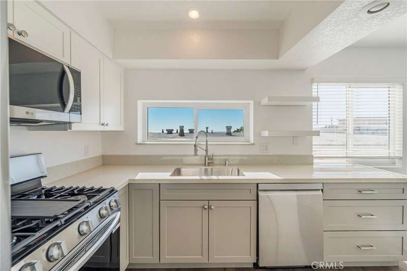 Two, oversized en suite bedrooms make this one the most unique and desirable homes for lease in the downtown area. Available for the first time since a major remodel of the kitchen, both bathrooms and the addition of a dedicated laundry room, this home has the style, status and location to fully enjoy the Manhattan Beach lifestyle. The new kitchen features all new stainless steel appliances including a five-burner gas stove with a griddle, a double door refrigerator with a freezer drawer, a new sink and faucet wand sprayer, functional quartz counter tops and roomy cabinets, cupboards and drawers. The bathroom remodels include new toilets, sink basins and vanities. The spacious 5’ x 9’ laundry room includes a new, full size washer and dryer by Inverter Direct Drive. A new sectional garage door maximizes usable space in the two-car garage. Each bedroom is large (12’ x 18’) (18’ x 15’) and can easily accommodate a king bed with ample room for an office or setting area. Both bedrooms have abundant closet space. The home has good window coverage providing loads of natural light and views of Palos Verdes Peninsula and Catalina Island.