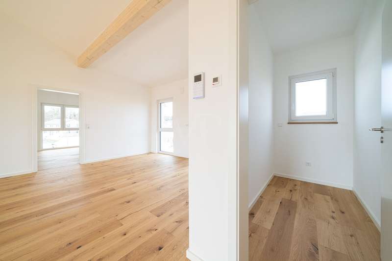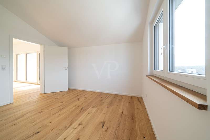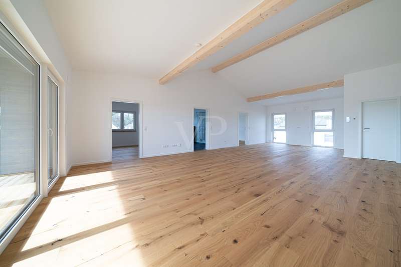 This modern new-build project is situated in a quiet and natural location in Flachslanden and impresses with its efficient KfW 40 standard and high-quality overall fittings. The complex comprises a total of just nine apartments, which are characterized by well thought-out architecture and first-class construction quality. The units offer an attractive selection of floor plans: 2-room, 3-room and spacious 4.5-room apartments that provide an ideal home for singles, couples and families alike. The project has already been completed, so nothing stands in the way of moving in! Both young and old will find a new home here. The entire complex and the apartments have been designed to be barrier-free. All floors are accessible via the central elevator. In addition, all bathrooms feature a level-access shower. The external bicycle boxes are also accessible at ground level and offer additional storage space. The timber construction gives the building a natural, warm appearance and also ensures a high level of energy efficiency. In order to guarantee standard living in the future, the new nine apartments were built using sustainable construction methods. Thanks to regenerative energy sources such as a photovoltaic system with storage, the local heating supply and the ventilation system with heat recovery, the apartments can definitely be described as future-proof and independent. The newly created floor plans impress with their clear room layout. In addition, the generous amount of light creates an atmosphere of harmony and elegance. The floor-to-ceiling south-facing windows provide a view of the greenery and convey a boundless feeling of living. Your own four walls offer a large, open area for living, dining and cooking. Attached to this are the respective retreat areas with plenty of space for work, guests and sleeping. Almost all bathrooms also have natural light. A floor-level shower with glass shower partition is naturally provided in all bathrooms. The 4.5-room apartments also have a bathtub. Lingering on the garden terraces and the well-proportioned south-facing balconies is particularly enjoyable. As soon as you enter your new apartment, you should feel the security and warmth that make a home. Particular attention was paid to the quality of the furnishings. High-quality real wood parquet has been laid in the living and sleeping areas and the bathrooms are tiled in modern anthracite. All residential units have additional storage space in the bicycle boxes and two free parking spaces. This new-build project in Flachslanden is ideal for anyone who wants to combine modern living with sustainability and a high level of comfort. A perfect home for people who value quality, energy efficiency and a residential location close to nature. See this pioneering project for yourself at a personal viewing appointment on site. We look forward to seeing you!