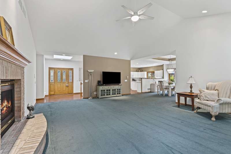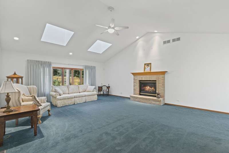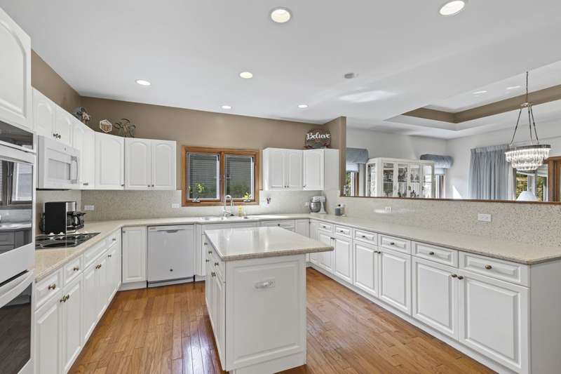 WELCOME TO THE OAKS CLUB, A Private Gated Community, (No Age Limits) where homes sit in a forest of Tall Oaks & Shagbark Hickorys, Three landscaped Ponds, with lit Flowing Fountains. Walking path through the common area. Maintenace Free with the HOA Landscaping, Snow Removal.(Per HOA Documents) Open concept RANCH STYLE HOME, with an OVERSIZED LOT & HALF PARCEL-2450 sq ft of Main Floor Living space. 1520 sq ft of finished lower-level living space. Total Livable sq ft. 3970. HUGE First Floor MASTER with Luxury Bath and walk in Closet. Second BR, with walk in closet and access to 2nd FULL BATH. GREAT ROOM has a Vaulted ceiling, open concept to both Kitchen and Dining area. White Cabinets for that easy to Decorate Neutral Decor. Kitchen is adjacent to a 11x14 eating area or sitting room, First Floor Laundry and Mud Room with entrance to garage. Sliding Glass Doors off the Kitchen area leads to THREE SEASON ROOM, with Tongue & Grove Cedar. Step onto your outdoor DECK with views of the lush Landscape! OPEN STAIRCASE to the lower Level featuring additional BR with 3rd FULL BATH. Second room as possible 4th Br, Office, Exercise Room. Lower Level has RADIANT HEAT in the floor for your winter comfort! Unfinished area in Lower Level has Staircase out to the OVERSIZED 3.5 CAR GARAGE.