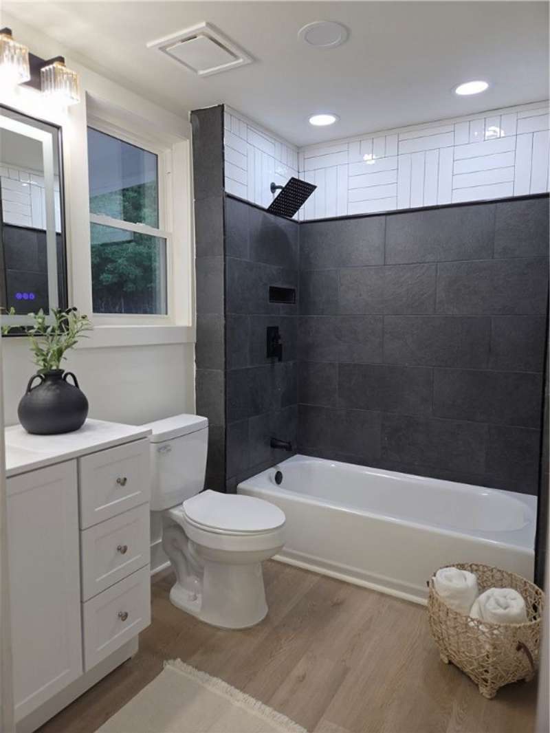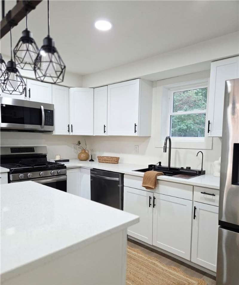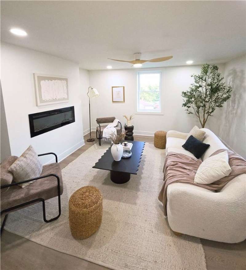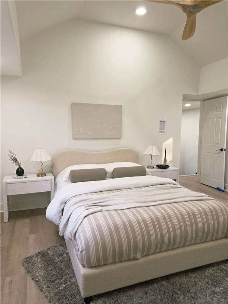 Must See this gorgeous complete renovation! Clean modern finishes, warm colors, brand new mechanicals and roof- maintenance free living! Wood flooring throughout, new windows, beautiful kitchen with all the bells and whistles! Two fireplaces, one in the living room and one in the office/bedroom, first floor laundry, spacious bedrooms upstairs with great architectural lofted ceilings, master bedroom features a half bath and shared hall bath round out this great house. Large yard, tons of parking and entertaining space, minutes from downtown and shopping!