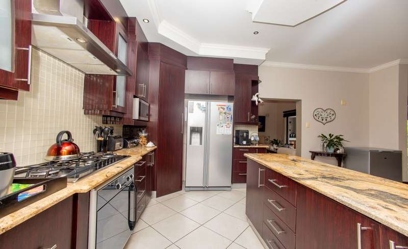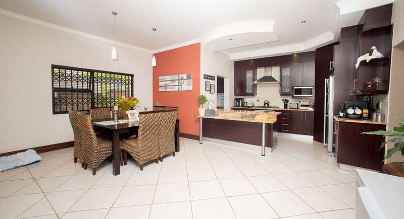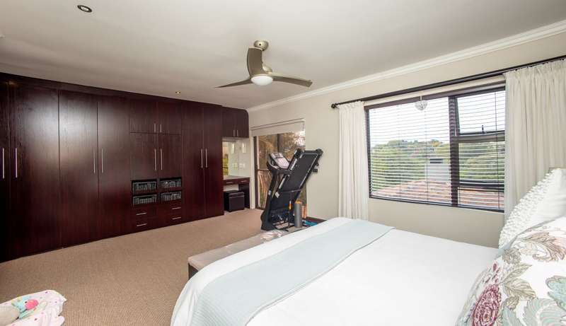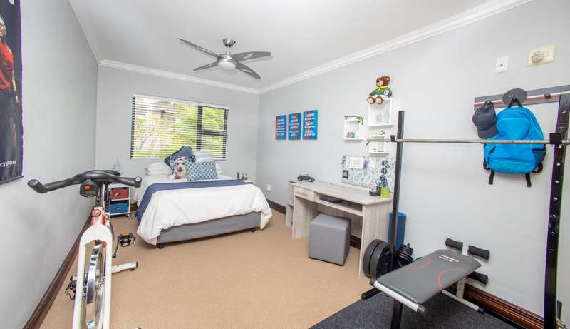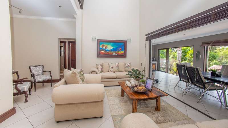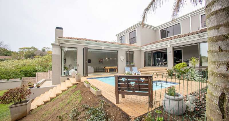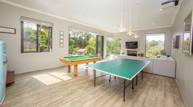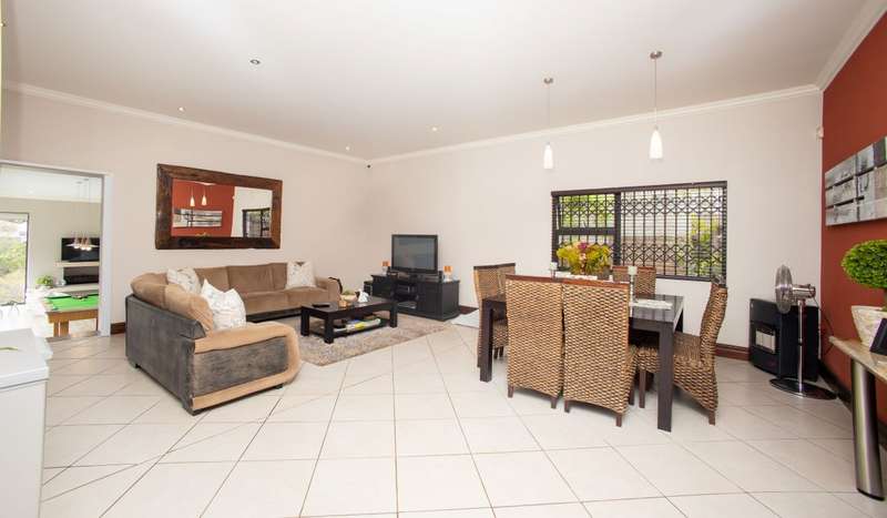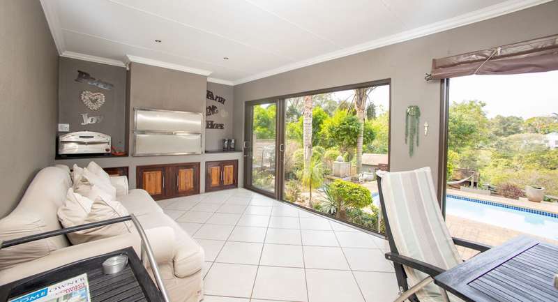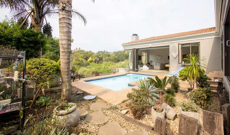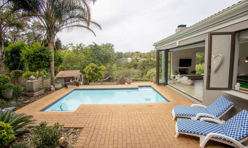 Nestled in a lush, park-like garden with sweeping valley views, this stunning modern residence combines contemporary design with the tranquillity of nature. Mature fruit trees enhance the charm of the setting, while expansive living areas transition effortlessly into a superb entertainment space. Featuring a built-in braai, stack-away and sliding doors, this inviting room opens directly onto the pool and garden – the perfect backdrop for relaxed family living and memorable gatherings. The stylishly fitted kitchen forms the heart of the home, designed for sociability and family connection. With four generously sized bedrooms and three elegant bathrooms, the home offers comfort and space for the entire family. A dedicated home office ensures productivity in a calm, private environment. Additional highlights include a garden shed, solar panels, multiple water tanks, a remote double garage, and ample extra parking. Completing the property is a modern, spacious one-bedroom flatlet – ideal for guests, extended family, or rental income. More than just a house, this is a sanctuary where modern living and natural beauty come together in seamless harmony.