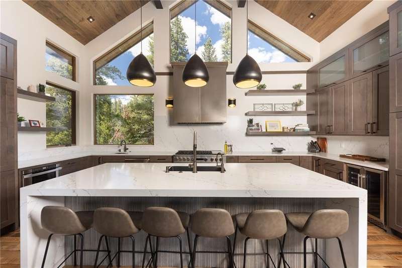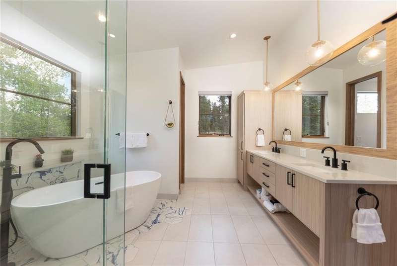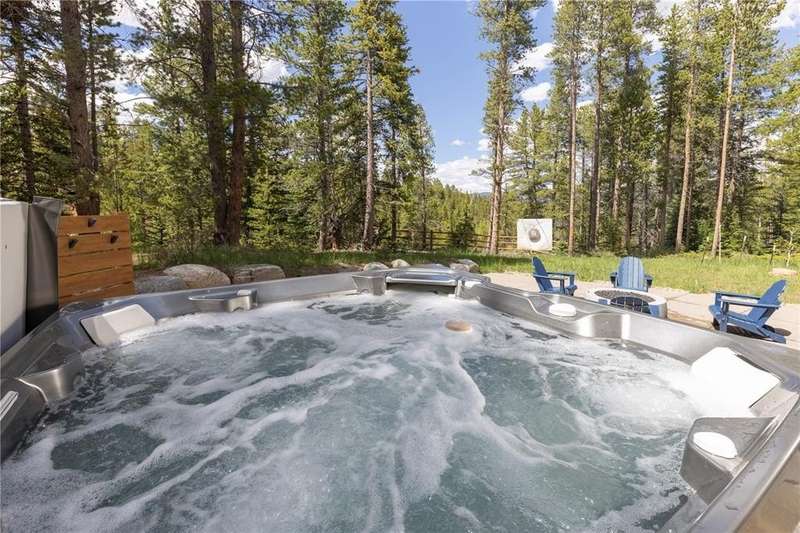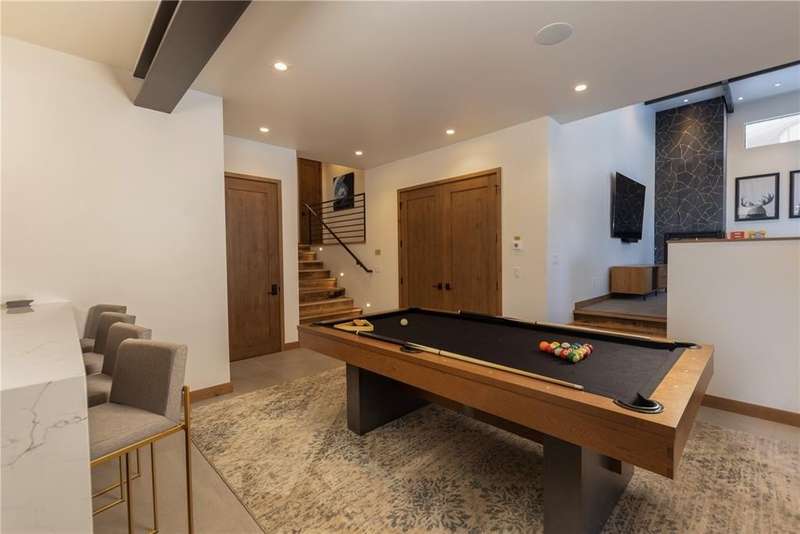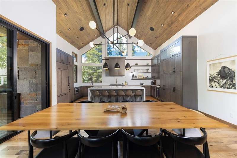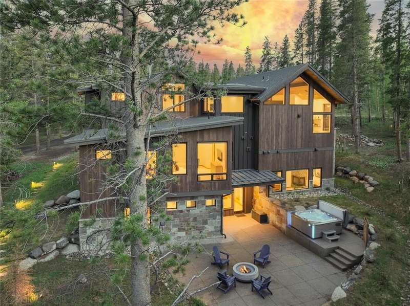 Experience elevated mountain living in this luxury, custom new-build just minutes from downtown Breckenridge. This impeccably designed home combines top-tier craftsmanship with a modern aesthetic, offering everything you want in a high-end mountain getaway. Thoughtfully laid out for comfort and connection, it features two primary suites perfect for hosting multiple groups or multi-generational families. Soaring windows, clean architectural lines, and premium finishes are featured throughout. The spacious game room includes a pool table and wet bar, ideal for entertaining. Enjoy a chef’s kitchen outfitted with Viking appliances, designer lighting, and open concept living spaces that flow seamlessly between indoor and outdoor areas. Every detail has been beautifully crafted to create a welcoming, social atmosphere that’s both stylish and functional. Step outside to the expansive outdoor living spaces with a private hot tub, built-in grill, and dual fire pits to take advantage of the idyllic setting with wooded privacy. Spa-inspired amenities include dual steam showers and a luxurious bath with double showers, adding a true retreat experience. Take in sweeping mountain views while gathering around the fire or soaking under the stars. Located on a peaceful cul-de-sac in the Peak 7 neighborhood, you have endless hiking and biking trails out your door. Fantastic access to Breckenridge Ski Area and Main Street’s shops, dining, and events. Local favorites including Broken Compass Brewing and Breckenridge Distillery are right down the road. Whether you're seeking adventure or a luxurious base to recharge, this home offers an unparalleled Breckenridge lifestyle year-round.