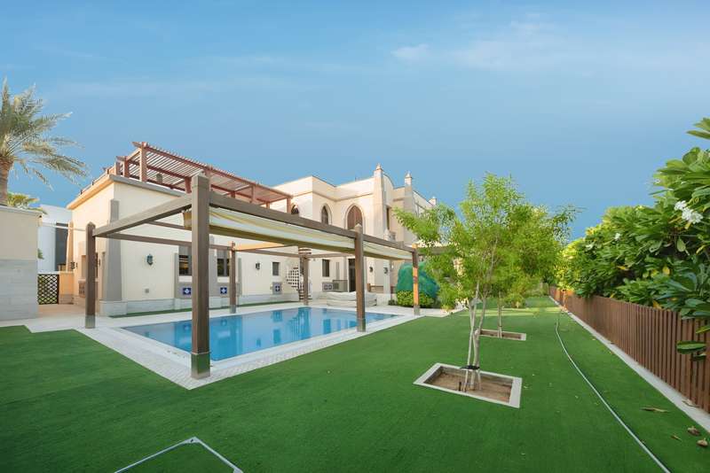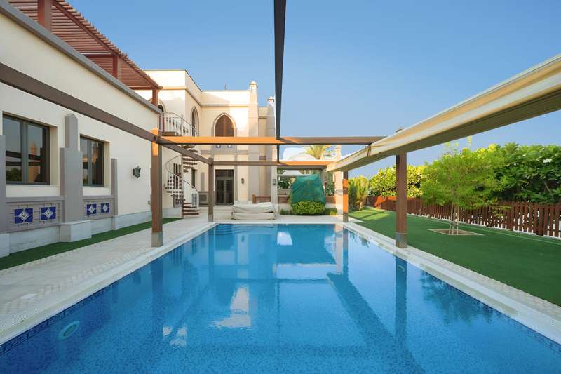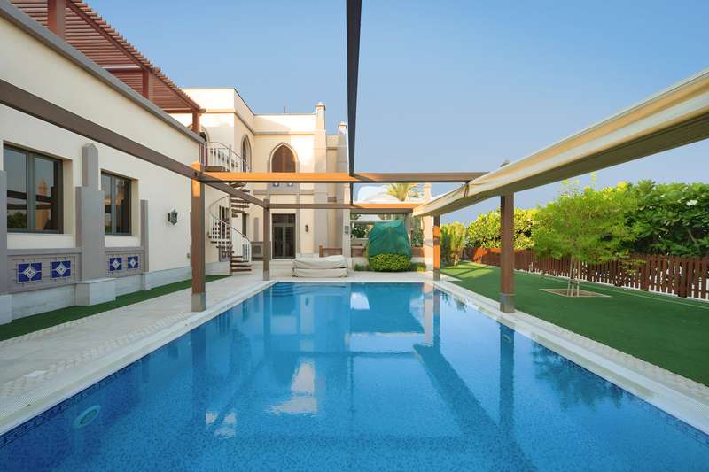 PRIME by Betterhomes are proud to present this five (5) bed Signature Villa on Palm Jumeirah. This unique villa is located in a prime location on Frond E, offering stunning views of the entire skyline from Burj Khalifa, Burj Al Arab to the Dubai Ain. Internally, the property boasts a spacious internal layout with a number of gorgeous features such as the master-suites private terrace, central overhead walkway and dining area overlooking your private beach. For those that love to entertain the garden space and pool area is the perfect place to barbeque and enjoy the views. - 13,400sqft plot - 2 Car Garage - Gated Entrance - Vacant - Private Beach - Maids & Drivers Room - Private Pool - Large Terrace The Palm Jumeirah is the UAE's most iconic community; with the Fronds representing the epitome of luxury living. For those seeking privacy, space and exclusivity all within a short walk of 5 star hotels, fine dining and lively beach bars then this villa is the one for you. Contact our PRIME agent today to arrange your viewing.