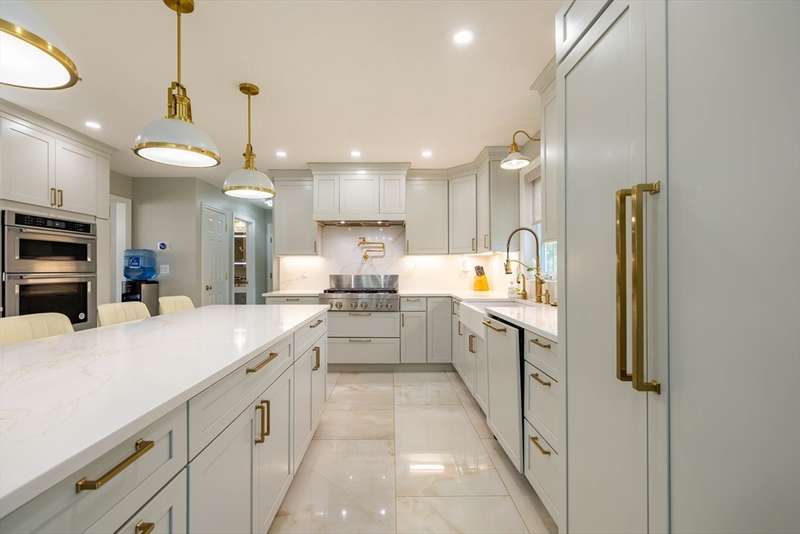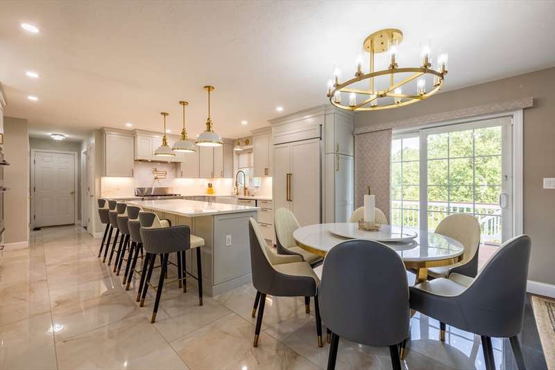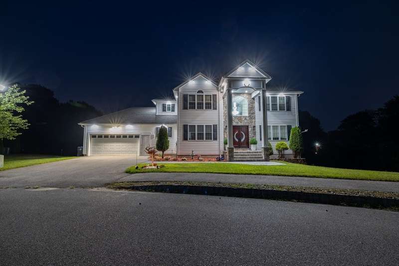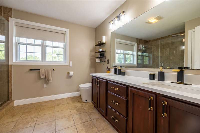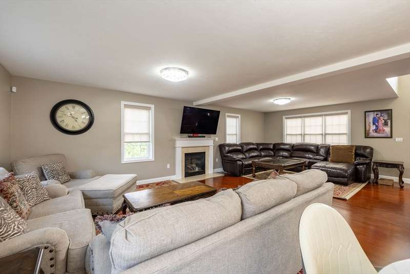 LUXURY, SPACE, AND SOPHISTICATION AWAIT IN THIS STUNNING METHUEN COLONIAL! Nestled on a beautifully wooded 1.3-acre lot, this 5-bedroom, 4-bath home offers 3,256 sq ft of upscale living in a serene neighborhood. Step into an elegant foyer and discover a sunlit layout featuring a fireplaced living room, expansive dining room, and a bright family room with picture windows. The totally updated gourmet kitchen shines with quartz countertops, center island, wet bar, wine chiller, and gas stove, perfect for entertaining. The cathedral-ceiling primary suite features a walk-in closet and spa-like bath. Two lower-level bedrooms with full bath, movie theatre + bar, and bonus room provide ideal space for guests or extended family. Enjoy hardwood floors, custom tile, and premium finishes throughout. Complete with central air, a finished basement, and a spacious deck and patio for outdoor living. Easy access to shopping, schools, and major routes.