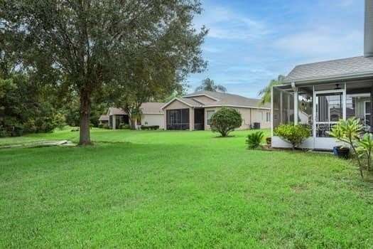 This immaculate home shows wonderfully and sits on one of the prettiest lots in the neighborhood. Enjoy your coffee sitting on your porch over looking scenic views of a POND, DEER and WOODS. Home sits on quiet cul-de sac so little trafic. Once inside the living room is spacious and designed for comfort and entertaining with very open floor plan. Primary bath has been totallly remodeled and will remind you of a spa. Most appliances have been recently replaced. For a low rate of $218.00 you enjoy low-maintance living encluding lawn with reclamed water, trash/recyling, security gate, and common areas. Location is anther plus being close to hospitals, shopping abd beaches. Bring your golf cart and experience Florida living at it best.