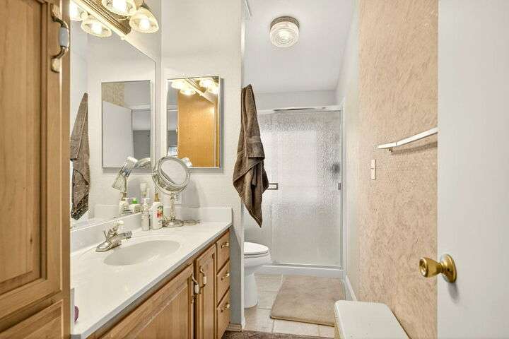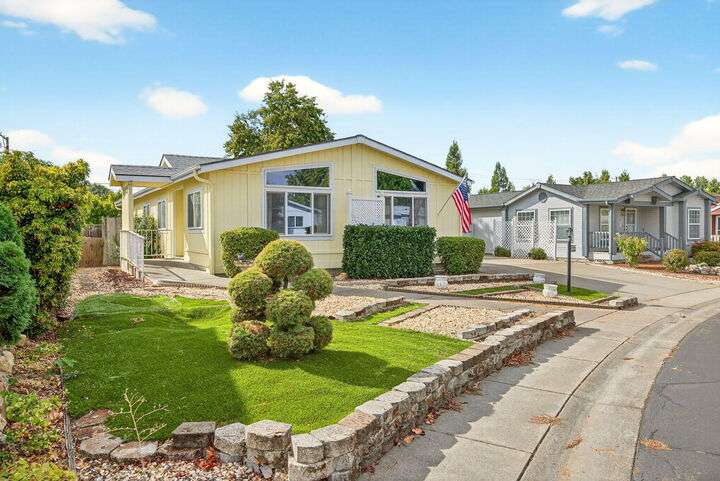 *OPEN HOUSE SATURDAY SEPTEMBER 20th 12-2PM* In the coveted Meadows 55+ community, this 1,512 sq. ft. home offers both comfort and convenience. Featuring 2 bedrooms, 2 bathrooms, a spacious office, and a dining room, the layout is ideal for everyday living. Vaulted ceilings, skylights, and ceiling fans enhance the airy atmosphere, while updates like exterior paint (2022), water heater (2020), and new gutter leaf covers provide peace of mind. A ramp leads to the front entry, and the covered back patio with tool storage is perfect for relaxing outdoors. The 2-car garage adds plenty of parking and storage space, and all appliances are included for easy move-in. Located on owned land with access to a clubhouse and pool, this well-maintained property offers an active and welcoming community lifestyle.