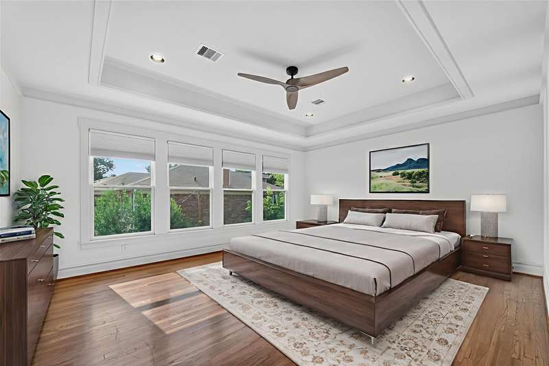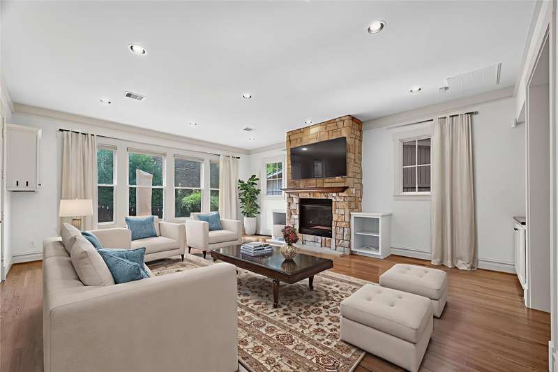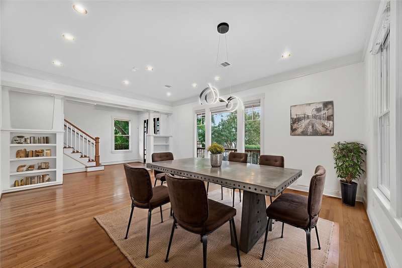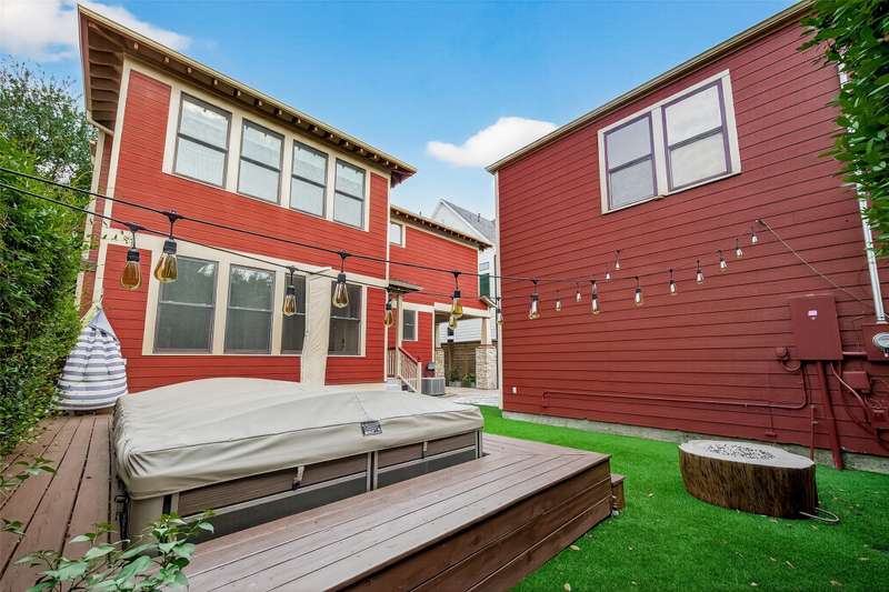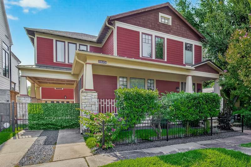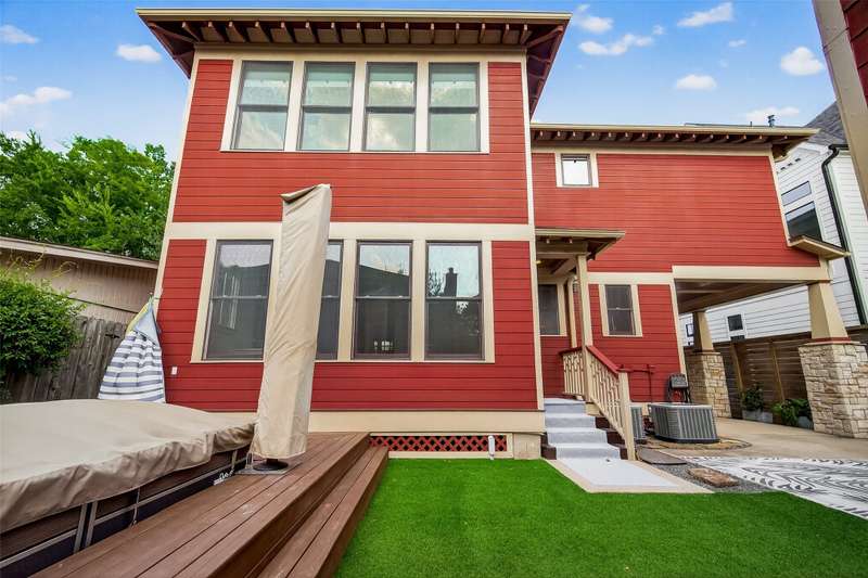 Stunning craftsman style home in The Heights! Full gated front yard & large covered porch welcomes you home. Front door opens to formal living/dining w/recessed lighting & gleaming hardwood floors.Kitchen boasts oversized island, pendant lighting, stylish backsplash, SS appliances, gas range/oven, under counter lighting, walk-in pantry & butlers pantry w/wine & coffee bar all opened to the living room. Large living room w/stone fireplace & additional built-ins. Second floor features primary retreat w/coffered ceiling, two large walk-in closets & primary bath w/ample cabinets/counter space double sinks, walk-in shower & soaking tub. Generous size secondary bedrooms! Hardwood floors throughout. Spacious utility room. Long gated driveway w/porte cochere w/2 car garage. BONUS ROOM above the garage with endless possibilities! Large back yard space w/a swim spa, deck, turf & fire pit.