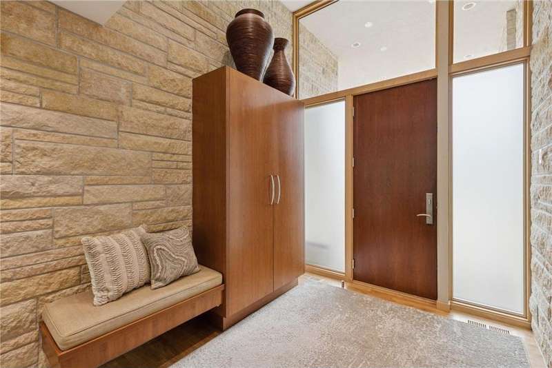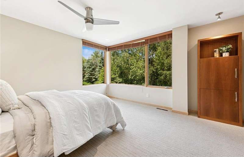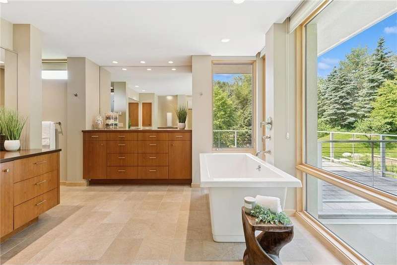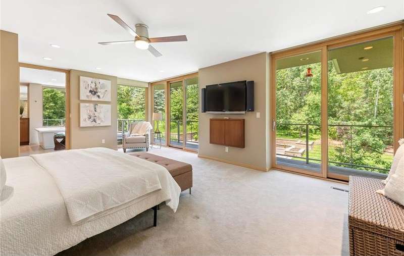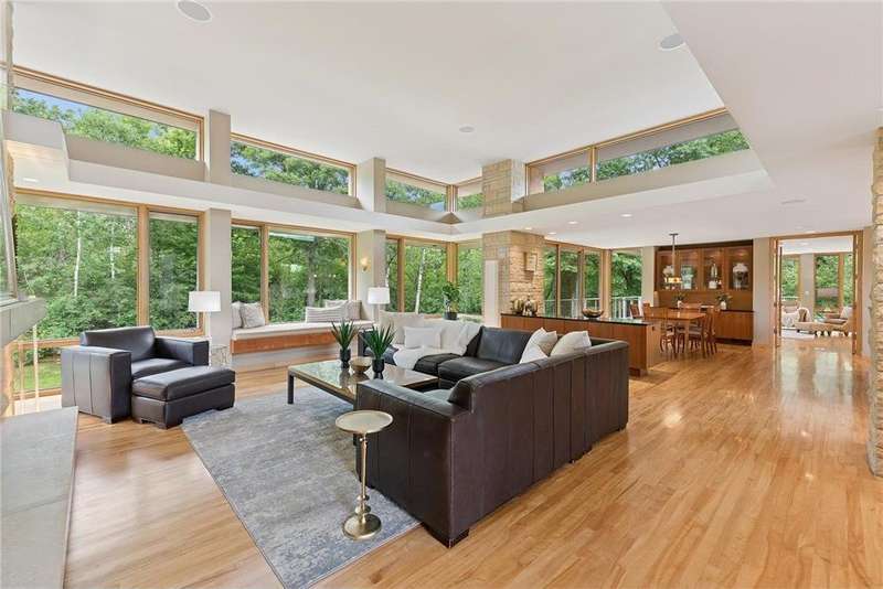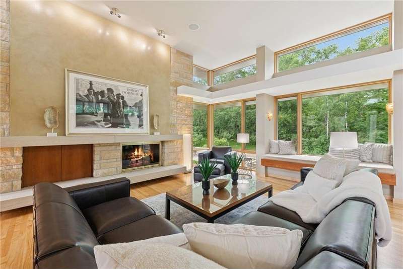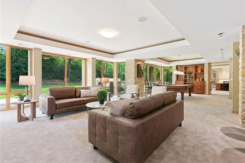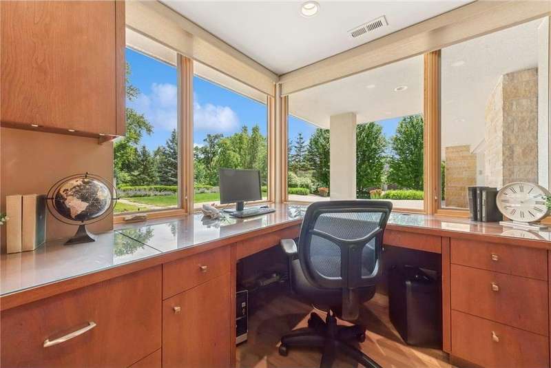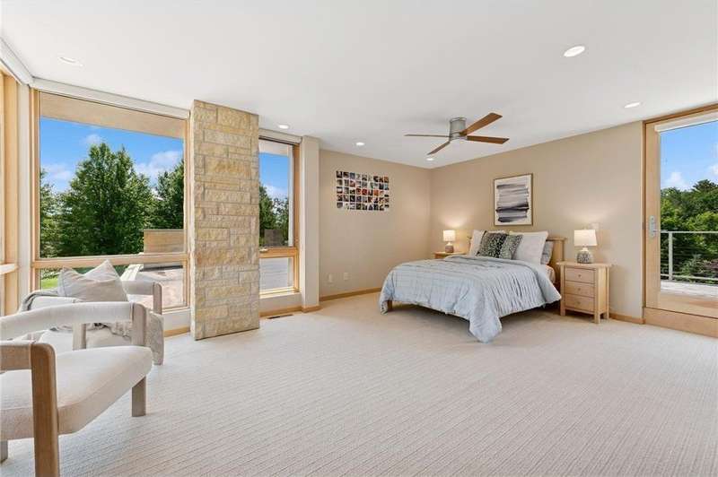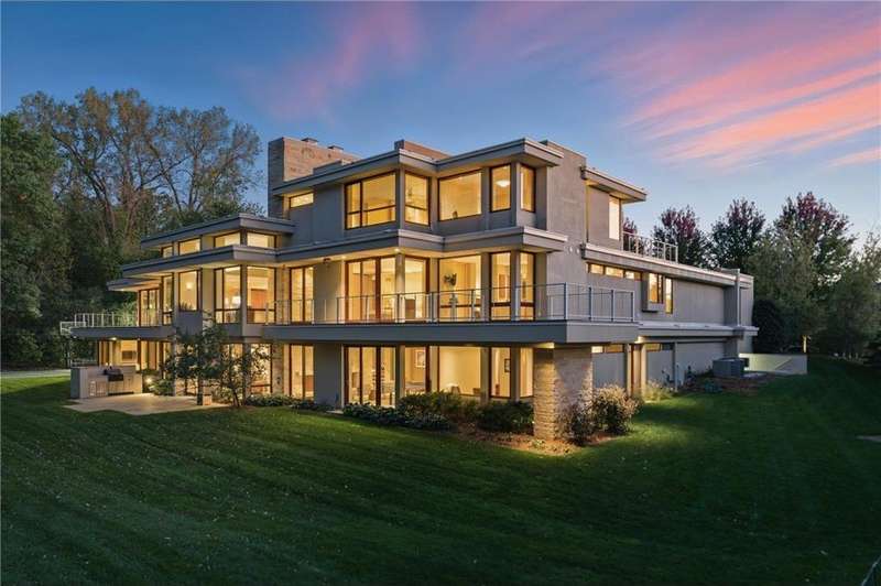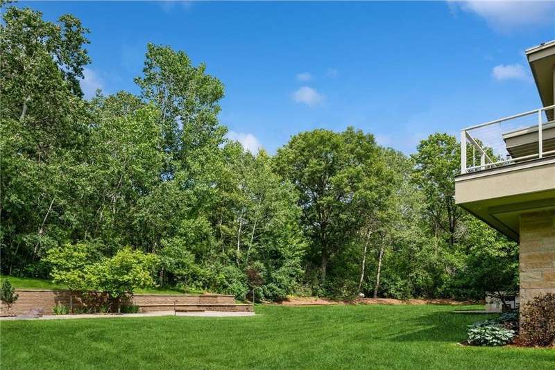 Artful Architecture that truly embraces the ample green spaces of this acreage setting. These are distinguishing aspects of this crowning achievement by an award winning Architect of international acclaim, Charles Stinson & carefully constructed by Streeter. Privacy without isolation as thoughtful placement of windows & landscape designed to assure great sightlines! Reward yourself with dual baths in a main floor owner's suite! Truly spa-inspired, both owner's baths offer remarkable & distinctly individual features. Technical brilliance by Lutron Lighting systems in multiple areas give you the ideal controls for a variety of lighting options. The clerestory great room is absolutely awe-inspiring, a daily delight for you & so impressive for guests, even Realtors have said "Wow!" here. Plus, a wealth of natural light is here, even in the lower level with multiple walk-outs. An Oscar worthy home theater is here with raked audience seating that grants 18 people a spectacular view of both screen & stage. 12 speaker surround sound with THX-certified amplifier. Acoustics in this home cinema were professionally designed for great sound throughout the theater. Ideal cinematic experiences start here & they start whenever you wish! You set the rules on phones in this cinema. Backstage, a huge finished space gives you a prep area to stage live events. Do you want an elevator? Yes, there's a space for that too, currently functioning as triple stacked walk-in closets just off hallways. In addition to a game room, another space accommodates a pool table & this flows gracefully to a family room with fireplace. Education pursuits have their place in the upstairs study, so your main floor office is just for you. Plus, there is another large room with cabinets & a walk-in closet that is currently seen as an art studio, that could become your 2nd office, a music room & more. The 4 season porch, just off the studio has independent A/C & heating, with sliding patio glass doors on 3 sides. Enjoy the great outdoors, all 4 decks, a pair of patios & 2 outdoor kitchens, a 4 season porch & the sport court all offer amazing functionality & blissful privacy. Daily ease of living is free of friction. Plus, you & your grateful guests are sure to savor fond memories made here. Your joyful celebrations have ideal spaces here! Nearby, a trio of private country clubs & one public golf course offer you extra recreation. Also, nearby dining, shopping & a boat launch on the river lets you see the Twin Cities from a splendid new perspective. With technological enhancements, strategic solar gain this private acreage estate within the city deserves your consideration. Grasp the opportunity for a private tour to see all this home & setting have to offer!