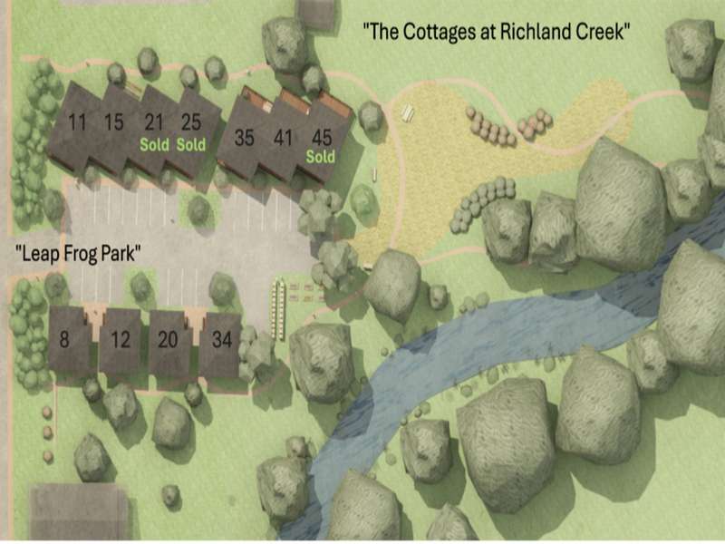 This charming new construction home, featuring the thoughtfully designed "Muscadine" floor plan, offers single-level living with 2 bedrooms and 1 bath. Perfect for those seeking modern convenience in a fantastic location, this home comes with a one year builder warranty, 2 parking spaces and is perfectly situated in a vibrant new subdivision located in downtown Waynesville. At the Cottages of Richland Creek you'll find quality construction by Benchmark Builders and enjoy easy access to city amenities, thanks to the convenient sidewalk that leads right to downtown. The community features carefully crafted green space with scenic nature trail, community gardens, and peaceful creek access?perfect for outdoor lovers looking for modern convenience. Bonus offering: 3K in seller paid closing costs with acceptable offers that close in 2025!