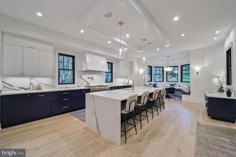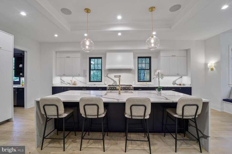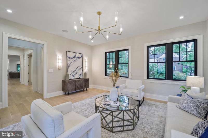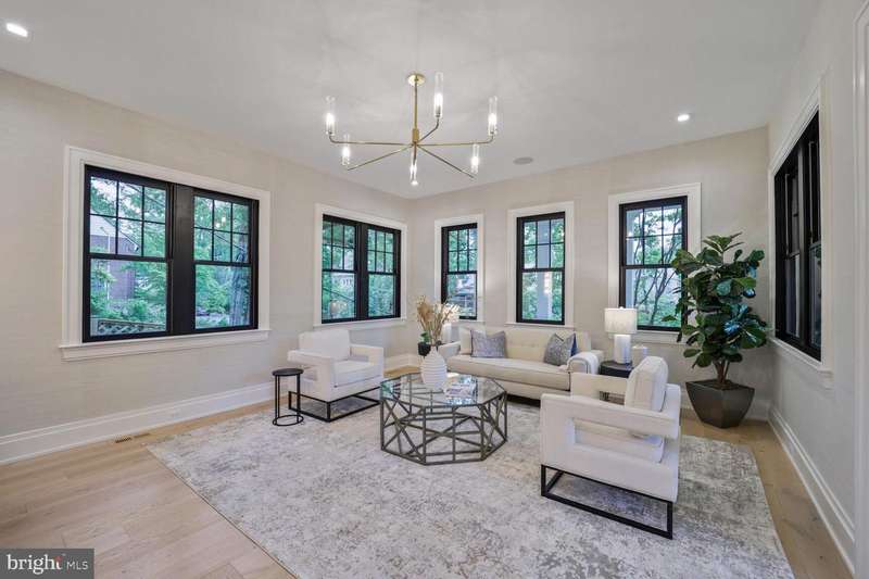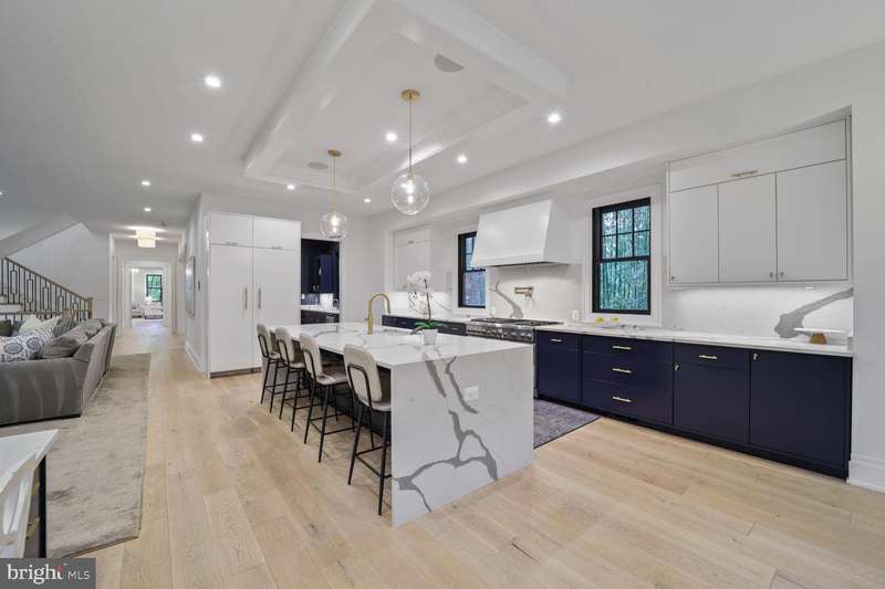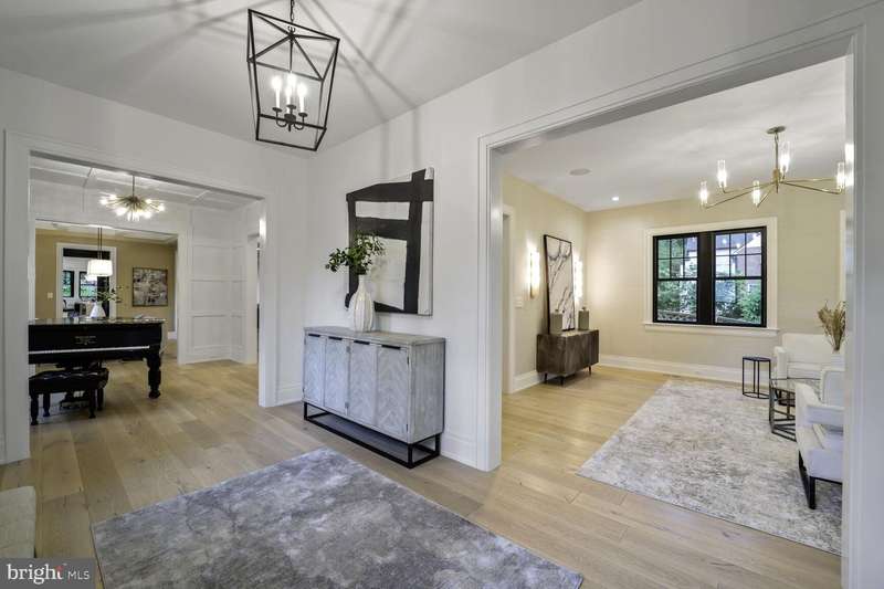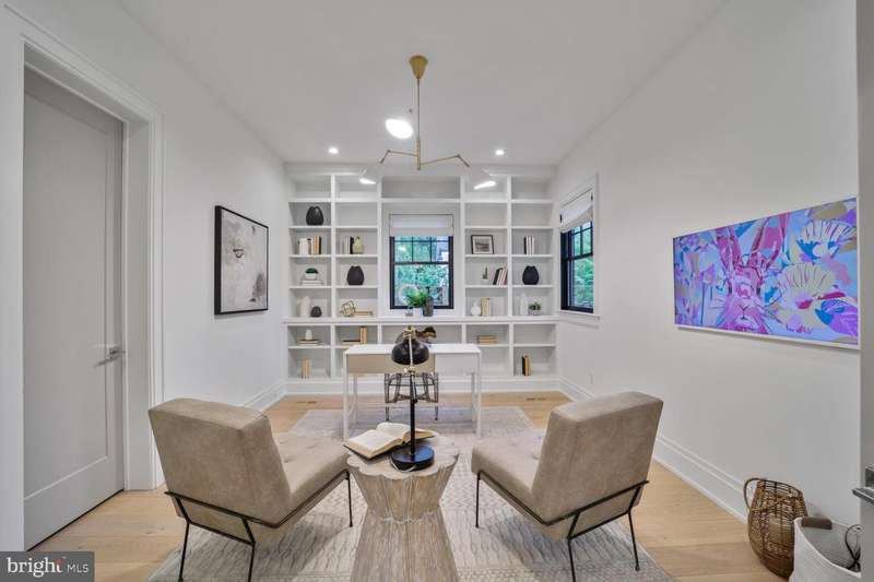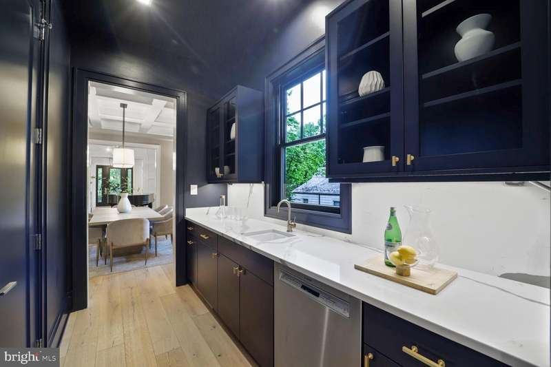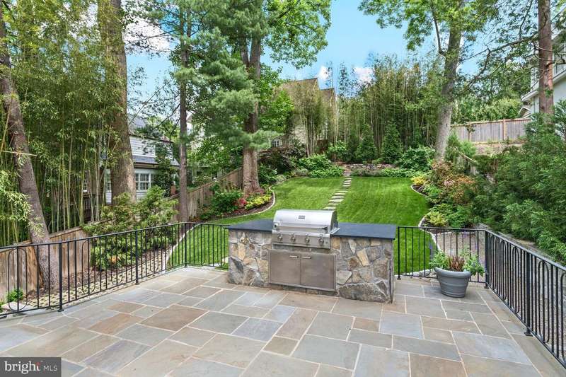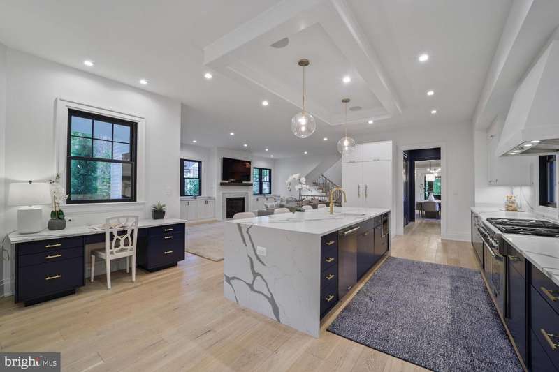 Beautifully built in 2018 and meticulously maintained and enhanced by the current owners, this expansive home features 7,700SF of luxury living across three finished levels with elevator access to all. The light-filled main level has an open floor plan with 10-foot ceilings, an elegant foyer, music/sitting room, formal living and dining rooms, private enclosed office, and powder room. Perfect for entertaining and everyday living, the spacious family room and adjacent gourmet kitchen provide a wonderful gathering place. The kitchen features a large center island with waterfall countertops, top-of-the-line appliances, breakfast nook, built-in desk area, and butlers pantry with a large closet and second dishwasher. The inviting family room includes custom built-ins, a gas fireplace, and French doors that lead to a private patio with a built-in gas grill. The second level is complete with a luxurious primary suite with private balcony, dual custom walk-in closets, and a spa like en-suite bath with marble finishes, soaking tub, and heated floors. Also found on this level are three additional bedrooms with en-suite baths and walk-in closets, as well as a convenient upper-level laundry room. The walkout lower level is outfitted with full size windows, 9 foot ceilings, and access to the rear terrace, making the space inviting and functional. This level includes a large recreation room with gas fireplace that is open to the game room (optional office #2), stylish bar area with a wine refrigerator and dishwasher, bedroom #5, and full bath #5. The mud room with cubbies and two car garage with built-in cabinets make staying organized easy. Each level enjoys its own outdoor space with slate terraces on the main and lower levels, primary bedroom balcony with tree top views, and a professionally landscaped and fenced rear yard with green space. Luxury finishes throughout including custom millwork, wallpaper accents, integrated speakers, mounted televisions, light fixtures, private elevator, three-zone HVAC system, and more. Located just minutes from Georgetown, Virginia, and Maryland, as well as easy access to all area airports, this stunning home combines timeless elegance with modern amenities in one of D.C.'s most coveted neighborhoods.