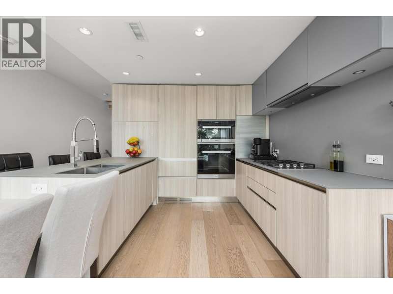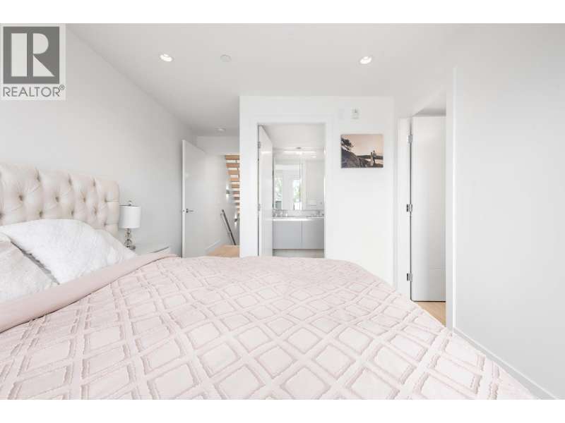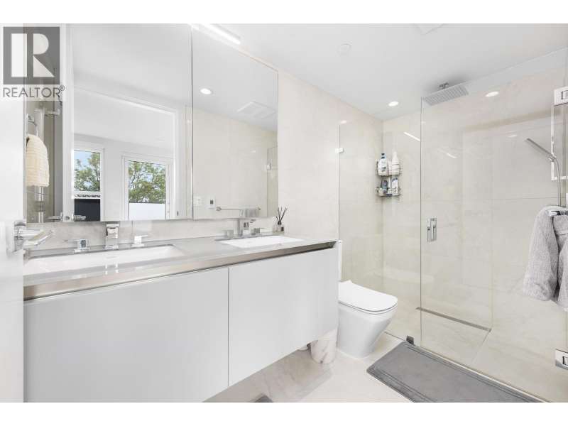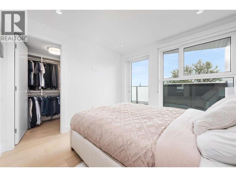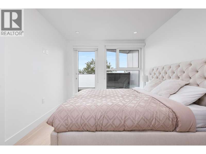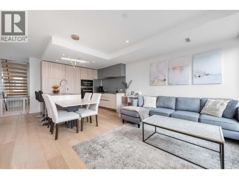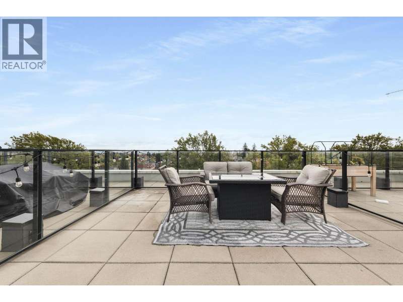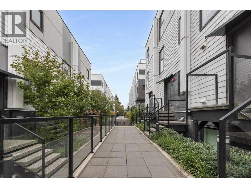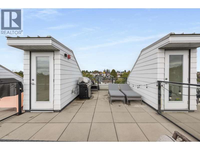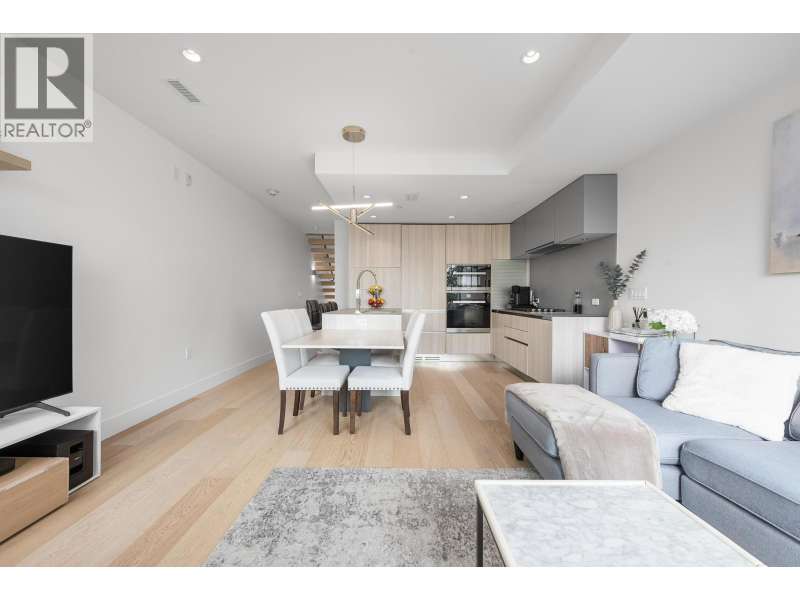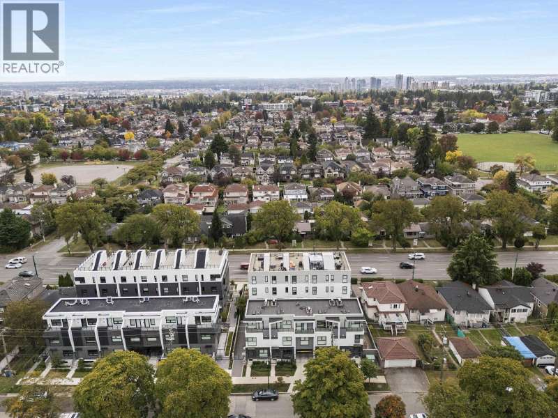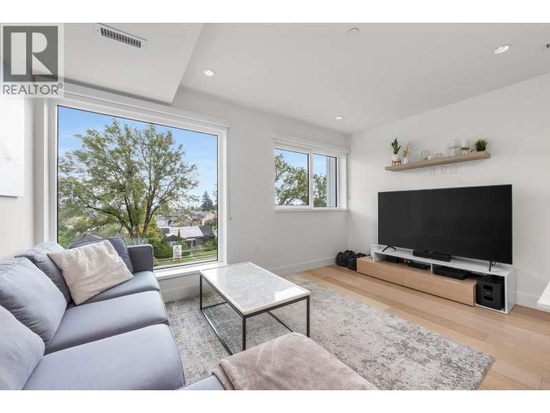 Welcome to your new home at Woodstock at Oakridge, ideally located 3 blocks from the new Oakridge Mall, a quick stroll to Queen Elizabeth & Columbia Park, schools, & transit. This three bedroom, three full bath townhouse unit is filled with natural light and features premium finishes including engineered hardwood flooring throughout, European style windows as well as energy-efficient multi-zoned heating and air-conditioning. The luxurious Italian kitchen boasts a sleek Miele appliance package, including a gas range and a full-size integrated refrigerator. Enjoy your own private oasis in the sky: a 400 sqft. rooftop deck with expansive views and hookups for gas and water - perfect for outdoor dining or relaxing under the stars. Comes with one EV parking stall! (id:58403)
