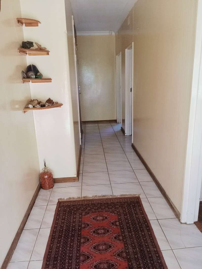 This well planned and spacious home is ideal for a young famil It boasts a huge yard with fruit trees and ample space Walking distance from primary school Three bedrooms a very large main bedroom if you want to add a en suit bath room or walk in cupboards two bedrooms with cup boards bath room with basin bath and over head shower with separate toilet Kitchen with cupboards and a scullery Dinning room Large lounge covered and secure stoep Outside washroom Single garage with electric door Electric gates Security alarm system Fibre internet connection Enormous potential Need some TLC