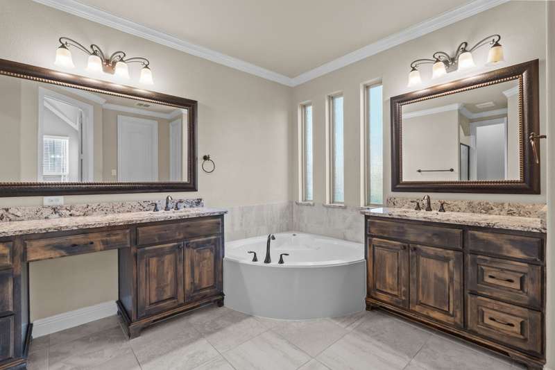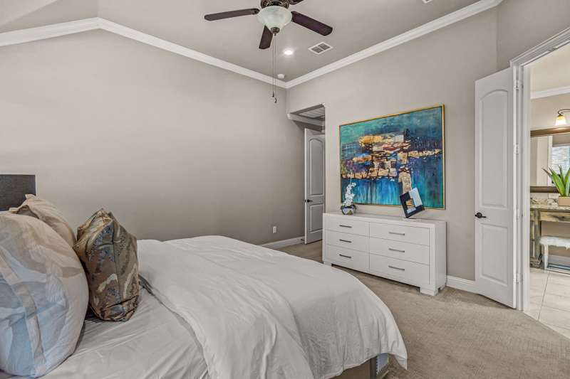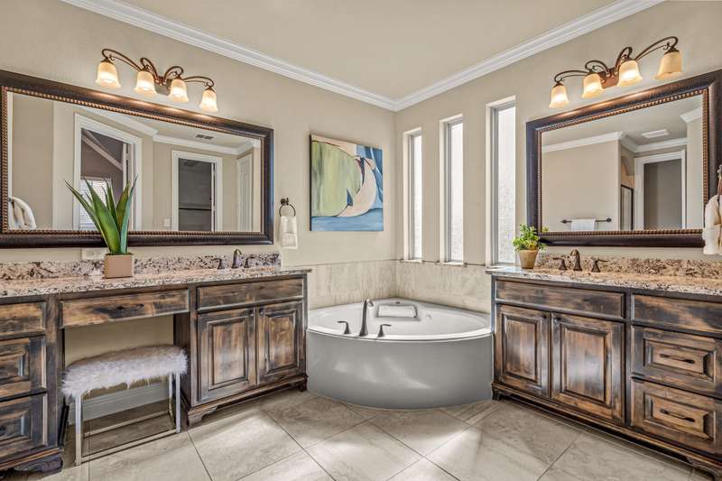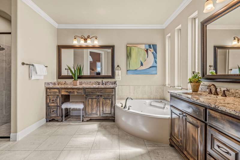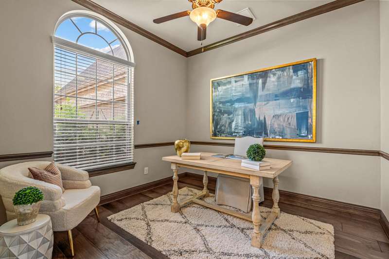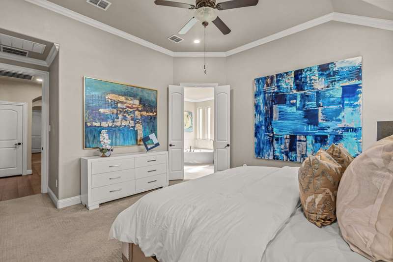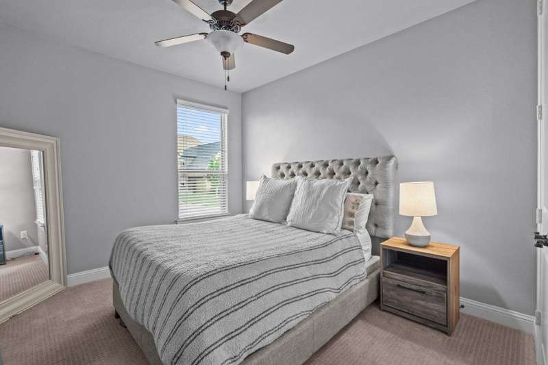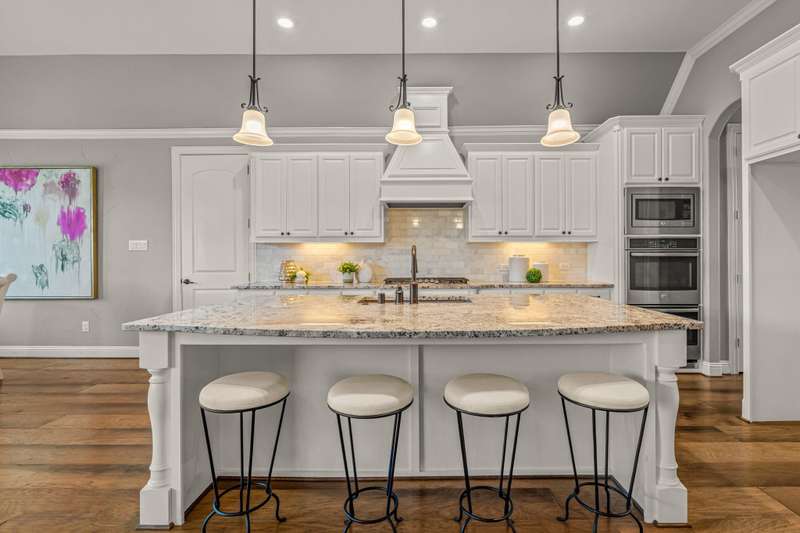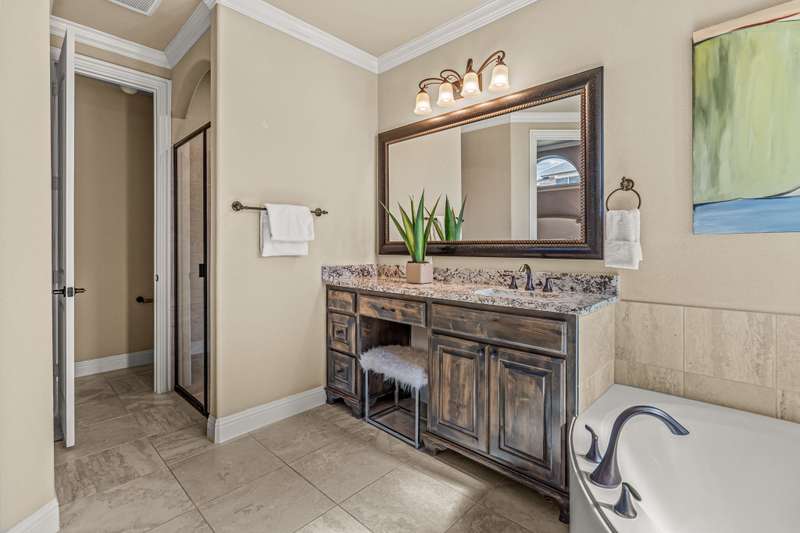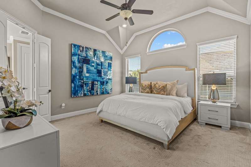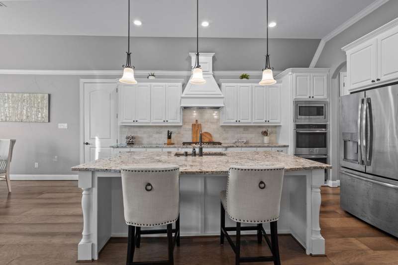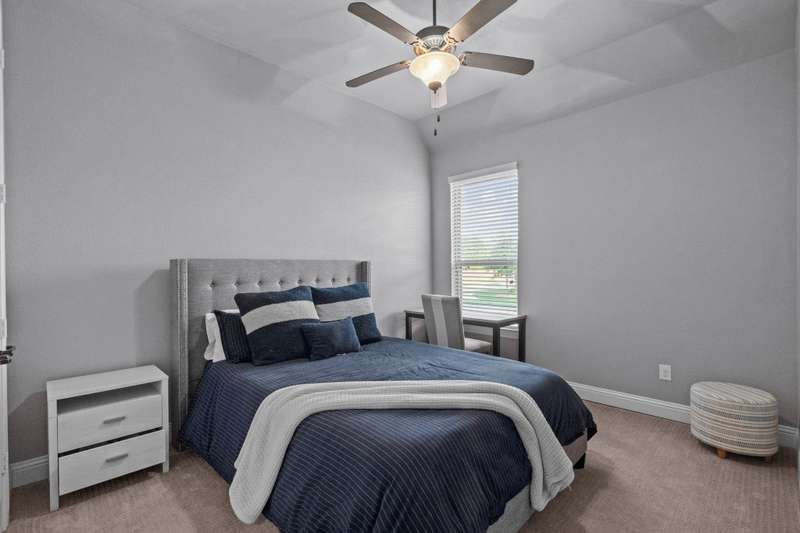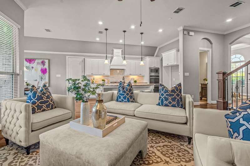 This beautifully designed 1.5-story home offers timeless elegance and flexible living. Rich hardwood floors flow throughout the main living areas, while the gourmet kitchen complete with a large center island, gas cooktop, double ovens, and crisp white cabinetryopens seamlessly to the family room, making it an entertainers dream. The versatile floor plan offers the option of 4 bedrooms or 3 bedrooms with an upstairs game room, ideal for a growing family or those needing flex space. The private primary suite is tucked at the rear of the home and features a spa inspired bath with dual vanities, a glass-enclosed shower and an oversized walk-in closet. Step outside to a covered patio perfect for dining, overlooking a spacious backyardready for play or future pool!