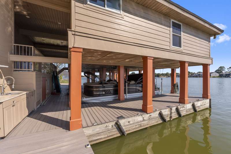 Presenting the Crown Jewel of Lake Conroe, a truly iconic property in the exclusive Del Lago Estates. Welcomed by a Gated circular drive, this sprawling masterpiece is situated on 2.4 Lakefront acres with over 460ft of bulkhead. The hallmark of this estate are the 2 boathouse guest suites, one of which boasts rare overwater living! The boathouse offers 3 covered boat slips & lifts, plus the 2 separate living spaces, each complete with their own kitchen and full bath. The primary wing is a sanctuary, featuring a sauna, steam shower, fully equipped gym, recovery lounge, solarium, executive home office, luxurious bath, and a two-level massive closet that includes private elevator access. The home also includes an attached guest suite living quarters with bed/bath, kitchen, & living space. Other noteworthy features inlcude; 4,000 bottle wine room, home theater, billiard room, library, game room with bar, pool/spa, impressive outdoor kitchen, generator, playground, & Montgomery ISD Schools!