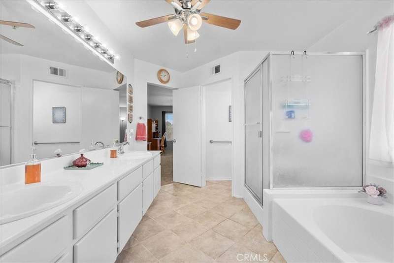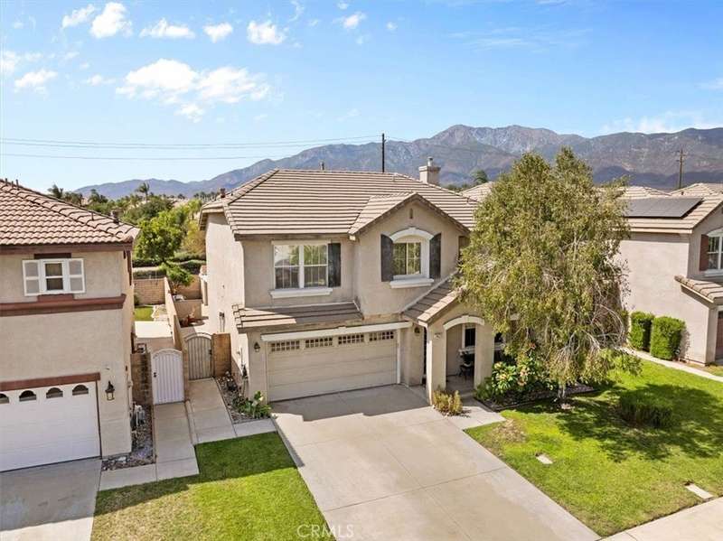 Spacious 3 bedroom plus loft with Mountainview's, outdoor entertaining, and prime location. Step into light, space, and comfort in this beautifully maintain home, designed with both everyday living and entertaining in mind. From the moment you enter, the open and airy floor plan welcomes you with an abundance of natural light. The heart of the home is the expansive eat in kitchen, complete with a walk-in pantry, backyard views, and plenty of counter space for meal prep and gatherings. The kitchen flows seamlessly into the family room where a cozy fireplace creates the perfect spot to unwind. A separate dining area adds elegance and flexibility for hosting holidays and special occasions. The versatile loft offers endless possibilities - whether you need a home office, playroom, game room, or optional guest space, it's ready to adapt to your lifestyle. Retreat to the spacious primary suite, a true haven featuring a large walk-in closet, Roman soaking tub, and separate shower. Secondary bedrooms are generously sized, providing comfort and privacy for family or guests. The oversized laundry room with built-in storage makes daily tasks a breeze. Step outside and discover your own private oasis. The beautifully landscaped backyard is designed for both relaxation and entertaining, boasting a built-in barbecue with a stove burner, lush greenery, and breathtaking views. It's the perfect setting for weekend cookouts, evening dinners under the stars, or simply enjoying a quiet moment outdoors. This home's prime location adds to its appeal - just minutes from the 15 freeway, shopping, dining, entertainment highly rated schools. Offering a blend of comfort, convenience and charm, this clean and move-in ready home truly has it all. Don't miss the opportunity to make this versatile property your own - schedule a showing today and experience the lifestyle you've been waiting for!