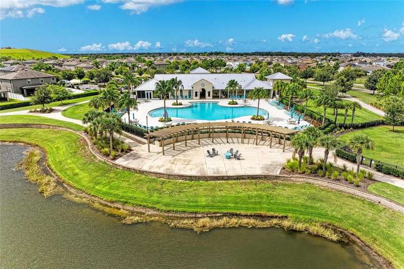 Experience lakefront living in this stunning 3-bedroom, 2.5-bath, 2,759 sq ft home in the sought-after South Fork community. Built in 2018, the open-concept floor plan connects the gourmet kitchen with granite countertops and stainless steel appliances to the dining and living areas, perfect for entertaining. A semi-private office and large upstairs bonus room provide versatile spaces for work, media, or play. The backyard features a covered patio and circular paver firepit overlooking the lake. Enjoy resort-style amenities—pool, fitness center, playgrounds, and walking trails—all for a super low HOA of just $11.75/month. Conveniently near I-75, shopping, dining, and Gulf Coast beaches, this home blends comfort, style, and lifestyle. Don’t miss this lakefront gem!