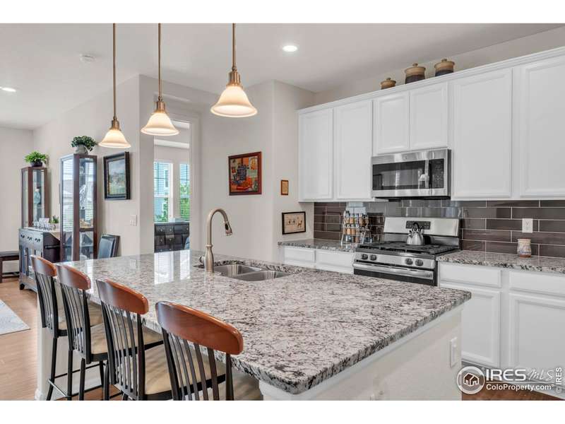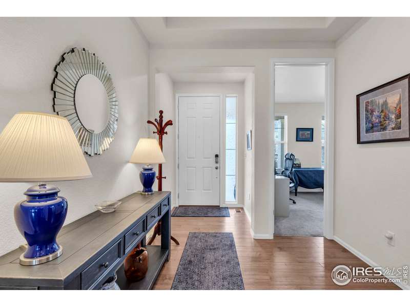 Spacious ranch style home with 3 car garage! Open floor plan with kitchen island, gas range, pantry, and living room fireplace. Main floor living with primary suite and laundry on the same level. Finished basement provides additional living space with family room, office, and fourth bedroom with an ensuite full bath (great for guests!). East facing covered back porch perfect for enjoying the cool Colorado summer evenings. Additional storage space in large basement. PV solar. Short distance to Lewis Pointe Park! Recycling and trash included with the metro tax district fee.