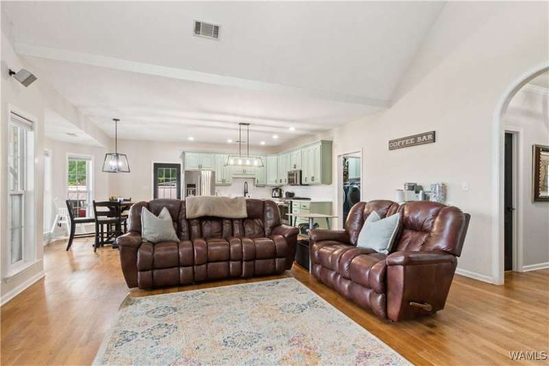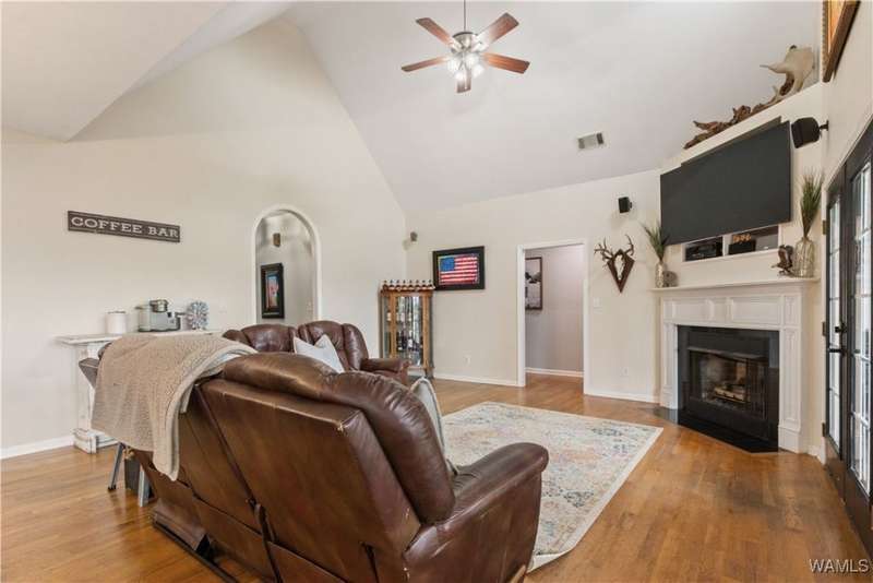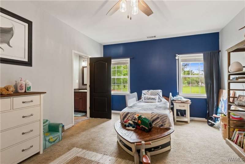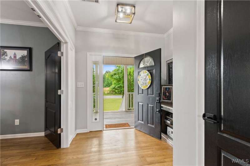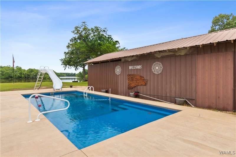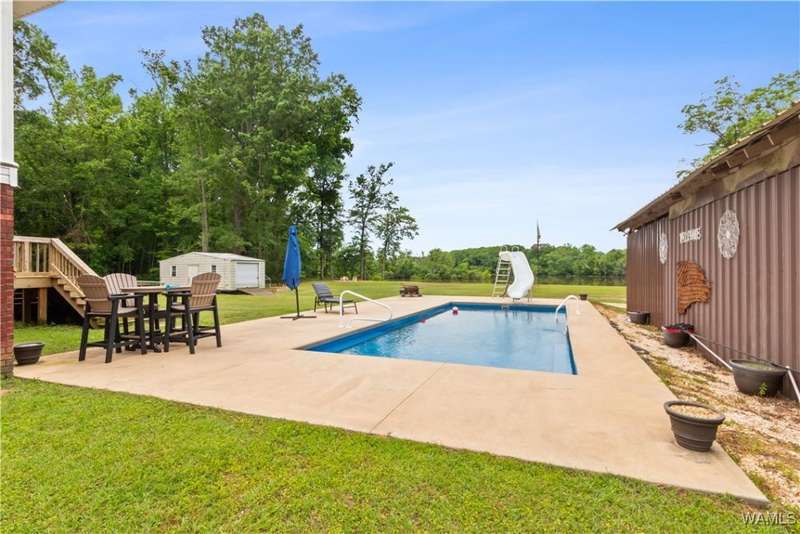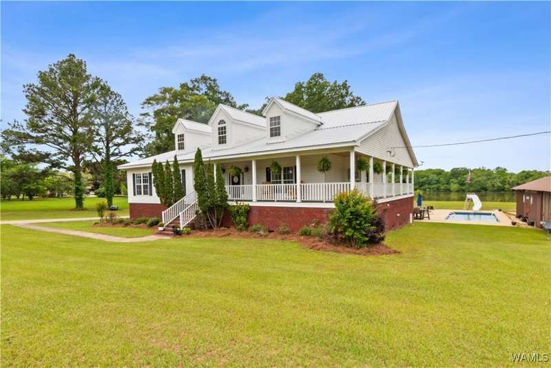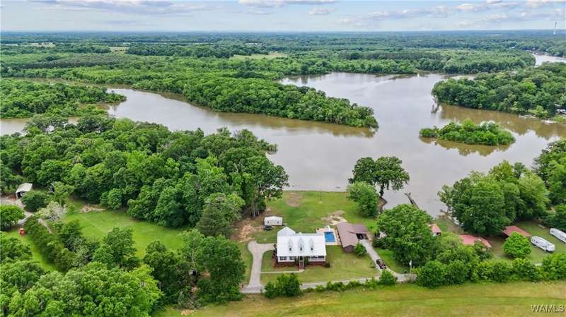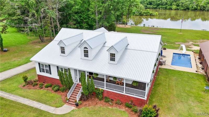 Discover this stunning 4-bedroom, 3.5-bathroom home situated on a serene 1.51-acre lot with picturesque views of the river. This property is a dream with a saltwater in-ground pool, a covered back deck, side deck, and a welcoming front porch. Inside, the home features hardwood flooring, 9-foot ceilings, and an open-concept living and kitchen area with vaulted ceilings. The spacious primary suite features an ensuite bath with a walk-in closet, soaking tub, double vanity, and a separate shower. The split bedroom floor plan offers a Jack-and-Jill bathroom connecting two of the secondary bedrooms. Recent upgrades include a new roof, updated kitchen with new appliances, and a new gas water heater.