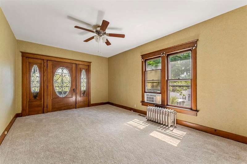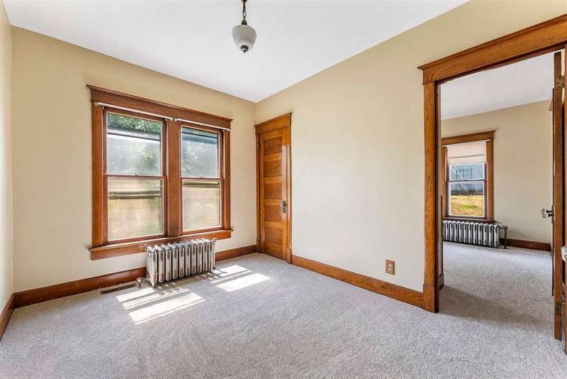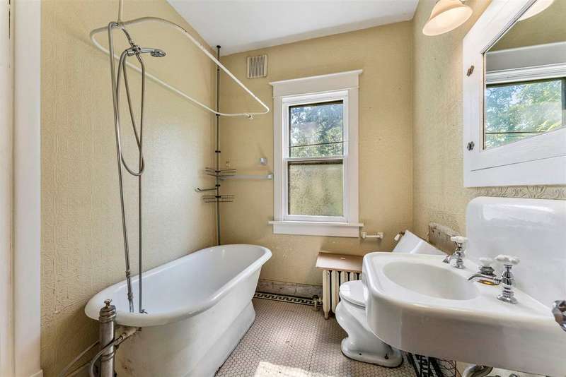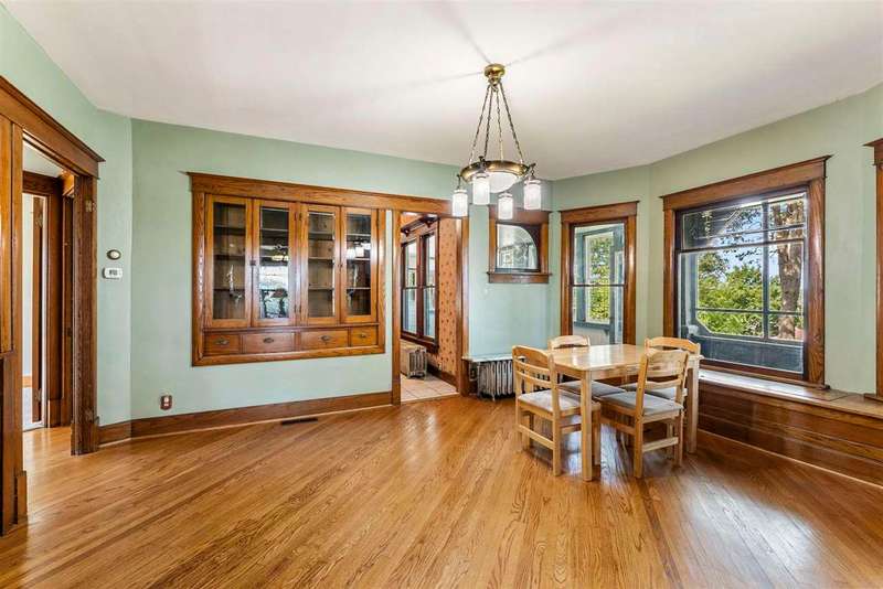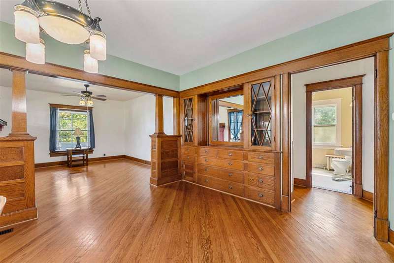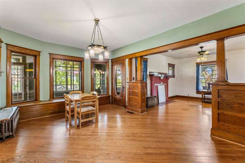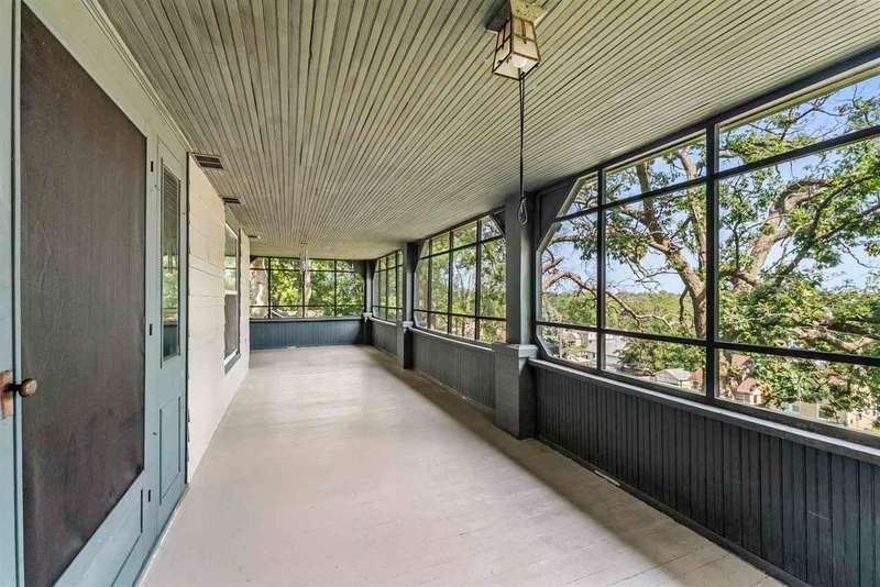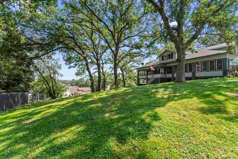 This unique Craftsman-style home, built in 1916, boasts over 2,000 square feet and features 4 bedrooms and 3 bathrooms. It is filled with the timeless charm and character of its era. Highlights include stunning leaded and etched glass, original oak floors, elegant columns, a cozy fireplace, and two built-in buffets in the formal dining room, all reflecting classic craftsmanship. Enjoy the expansive wrap-around, three-season screened porch, perfect for relaxing while overlooking the beautifully landscaped, park-like yard with mature oak trees. The property spans 0.96 acres and includes a four-stall garage, a covered patio, and much more—truly a must-see! There is plenty of storage available in the attic and basement. The home is equipped with steam heat and central air, and features a fenced-in backyard.