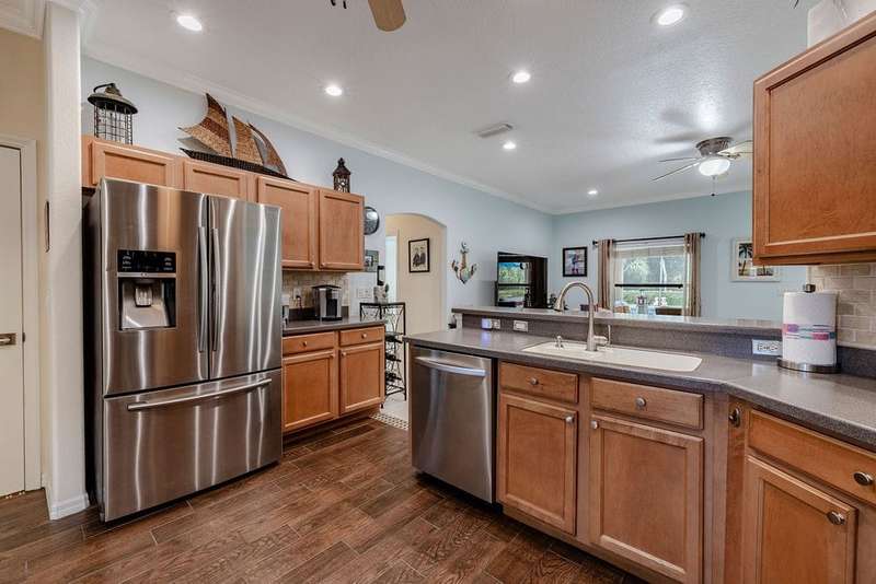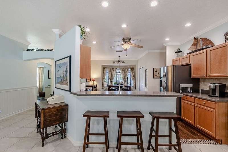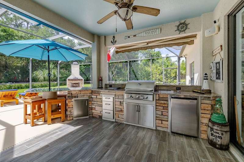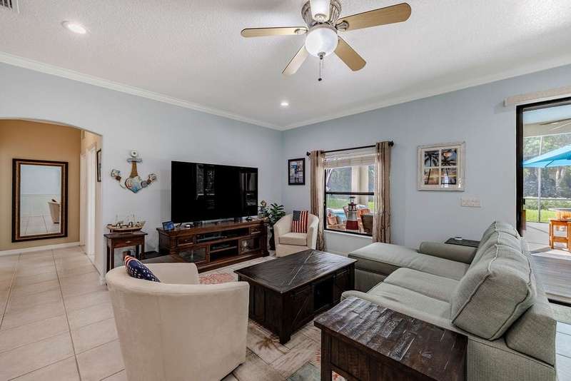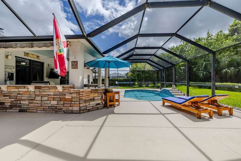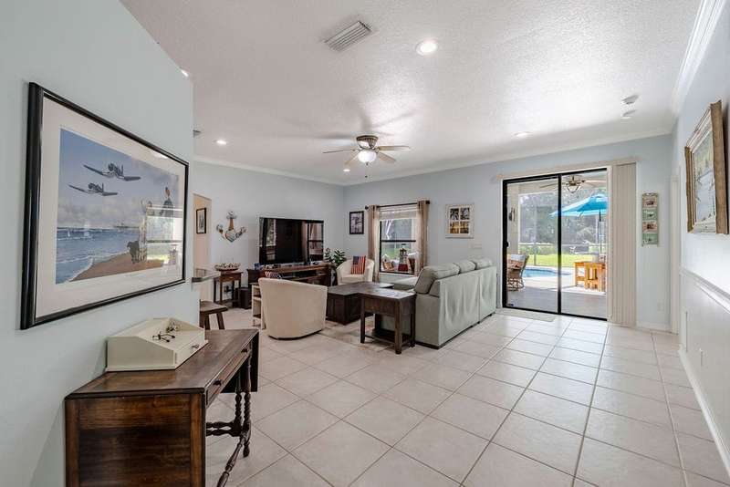 Embrace the pride of ownership with this remarkable pool home in Waters Edge. Featuring a built-in outdoor kitchen and fireplace, the property ensures complete privacy with its serene preserve backdrop. Ideal for hosting gatherings, the home showcases a generous open kitchen and a sought-after split floor plan with 3 bedrooms, 2 bathrooms, and a den. Freshly painted with elegant crown molding throughout, it's move-in ready. Conveniently located near top-rated schools, shopping, dining, and beaches. Plus, enjoy peace of mind with a roof installed in 2023. Sizes are approx/subj to error.