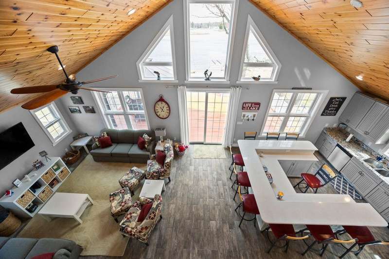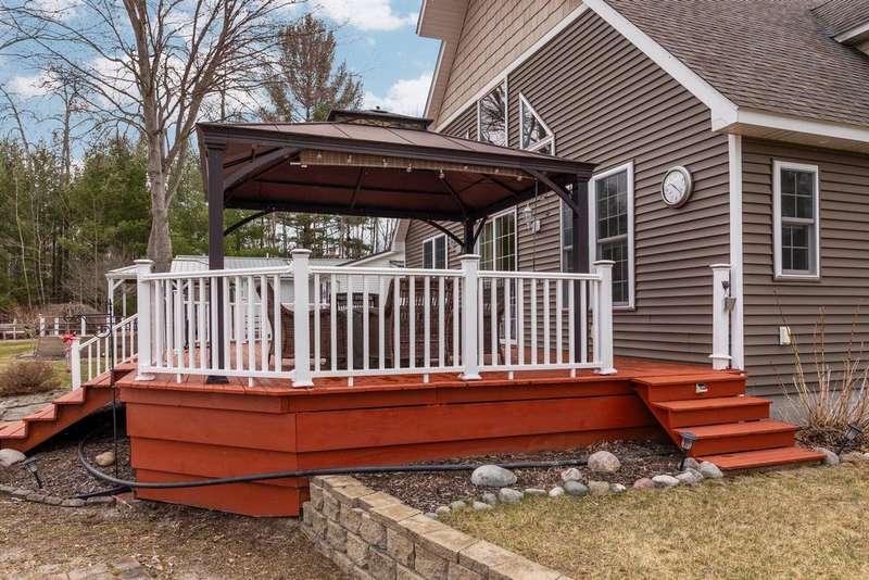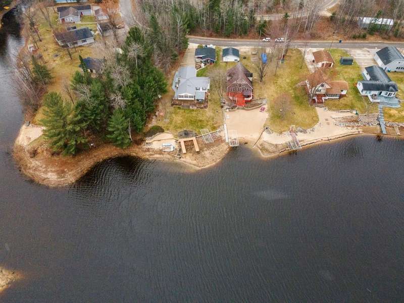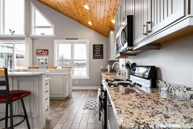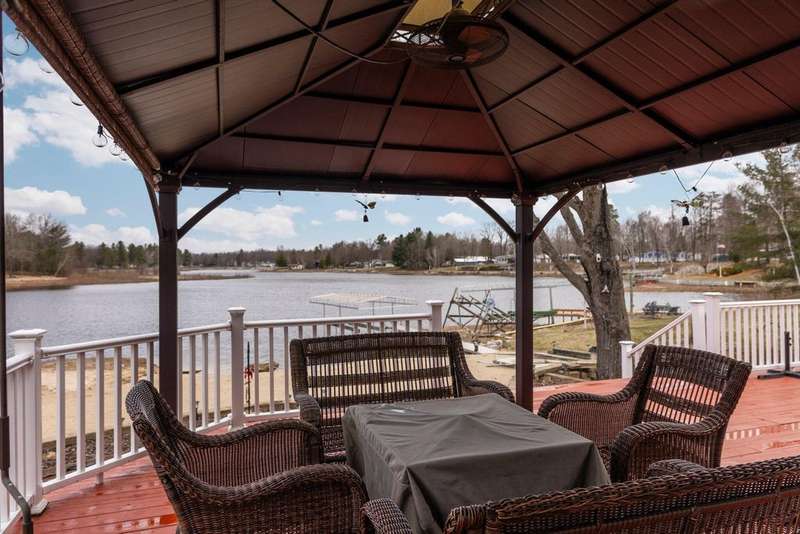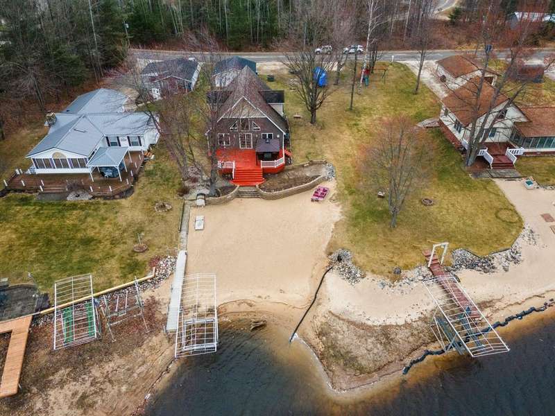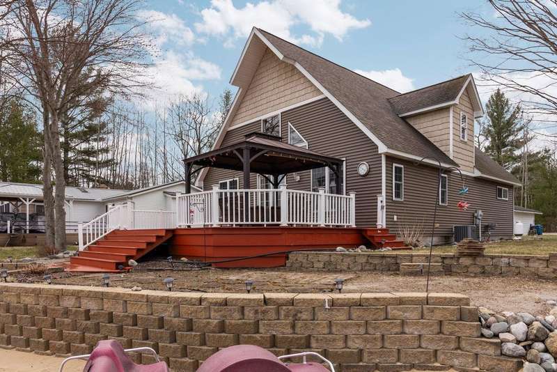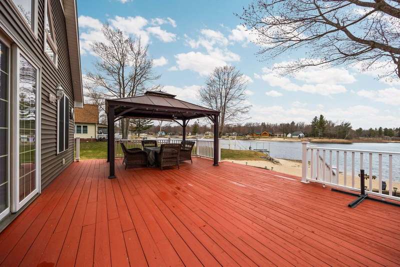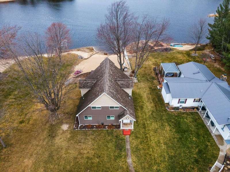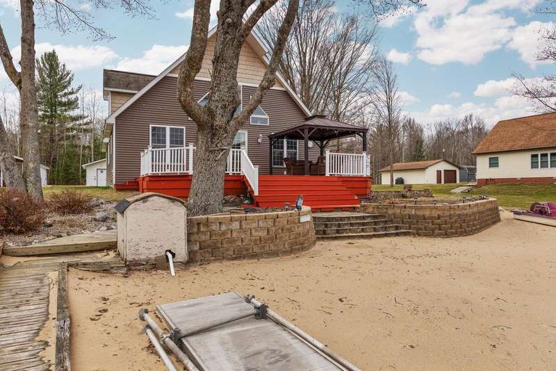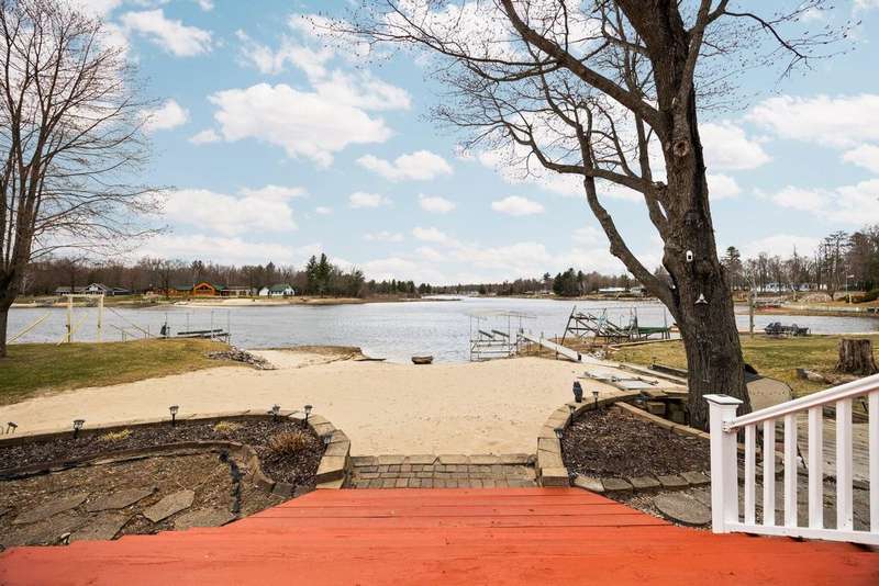 Looking for that slice of waterfront paradise on Secord Lake, well, look no further! This stunning 2450 sq. ft. home offers a perfect blend of luxury and tranquility. On 80' of prime waterfront, this property provides a breathtaking view of Secord Lake. Step inside and be captivated by the spacious and meticulously designed interior with open floor plan and many windows to let in tons of natural sunlight. The heart of the home is the stunning kitchen, featuring a custom-built quartz island with seating for 10 and a wine chiller, a true masterpiece for culinary enthusiasts and those who love to entertain. Granite countertops and high-end cabinets compliment it beautifully. On the main floor, you will also find two bedrooms, two full bathrooms, and the laundry room. Head on upstairs the spacious loft that overlooks the kitchen and living room. This space could be used as an office, sitting room, or additional sleeping room, the options are endless. You'll also find two more bedrooms for your guests. The exterior of the home is equally impressive, designed to maximize enjoyment of the picturesque surroundings. You'll love your very own SANDY BEACH area that is perfect for sunbathing, swimming or simply relaxing by the water's edge. The 30' x 18" deck provides a beautiful vantage point to take in the lake view, complete with a gazebo and fire bowl for those cozy evenings. Whether hosting indoor dinner parties or outdoor barbecues, this home is geared for entertaining. The seamless flow between the indoor and outdoor spaces ensures that you and your guests can enjoy the best of both worlds. In 2017 this home had a major overhaul. New kitchen, updated bathrooms, roof, furnace, air conditioner, vinyl siding, spray foam insulation, and crawl space encapsulation. This stunning home on Secord Lake is more than just a place to live, it's an experience waiting to be embraced. With its modern updates, luxurious amenities, and stunning waterfront views, it offers a lifestyle of comfort, elegance, and endless enjoyment.