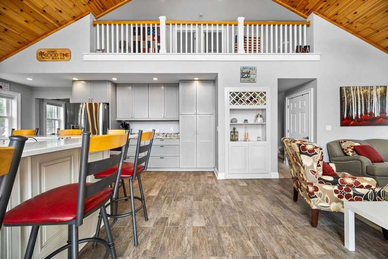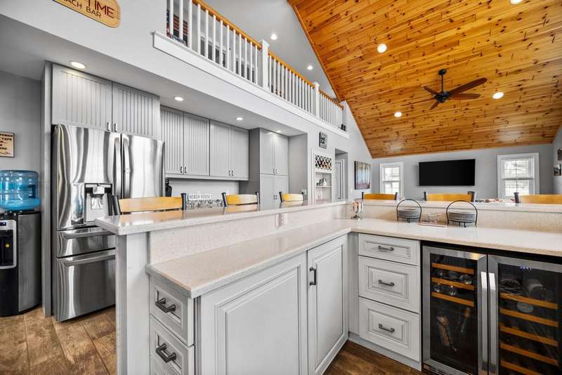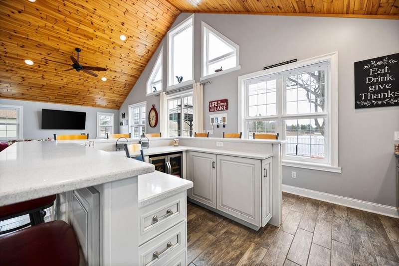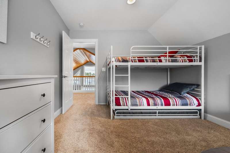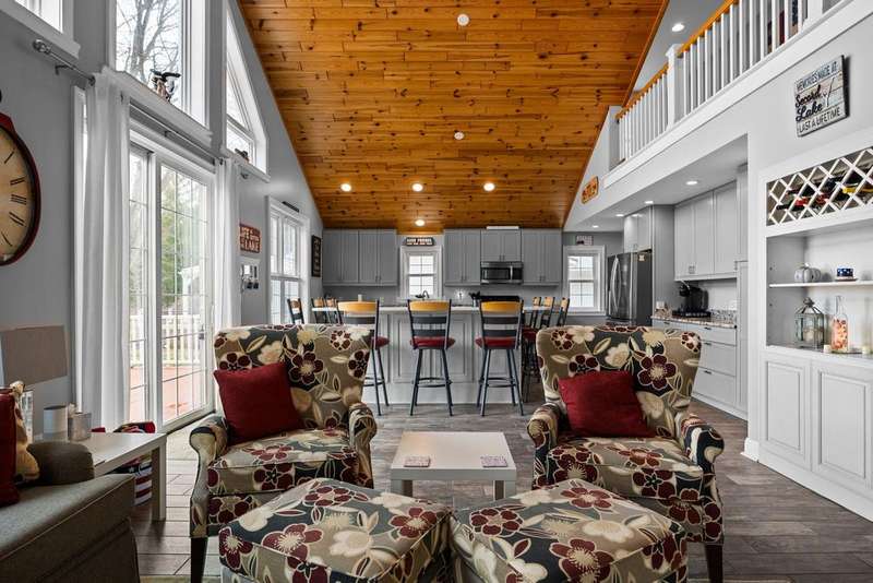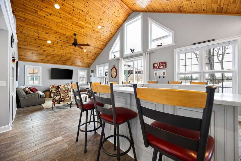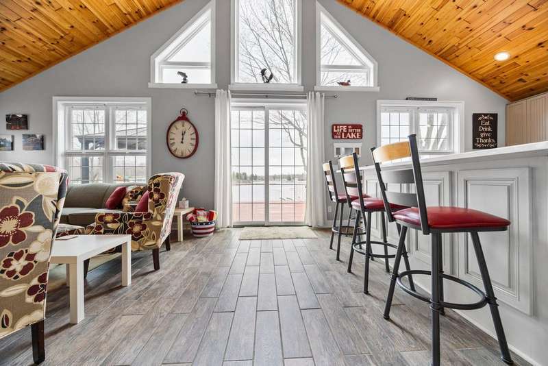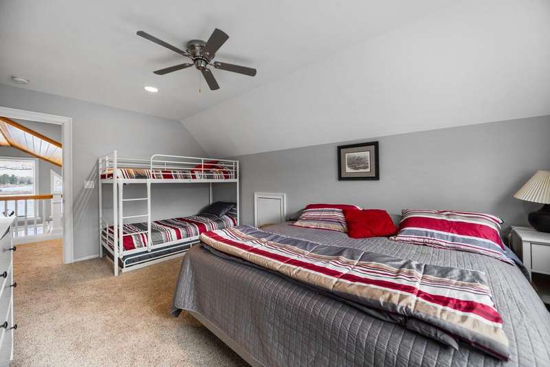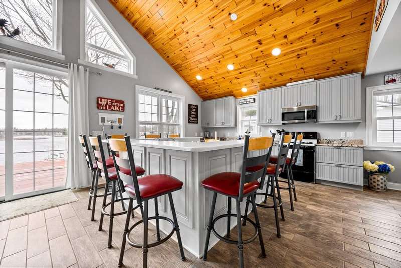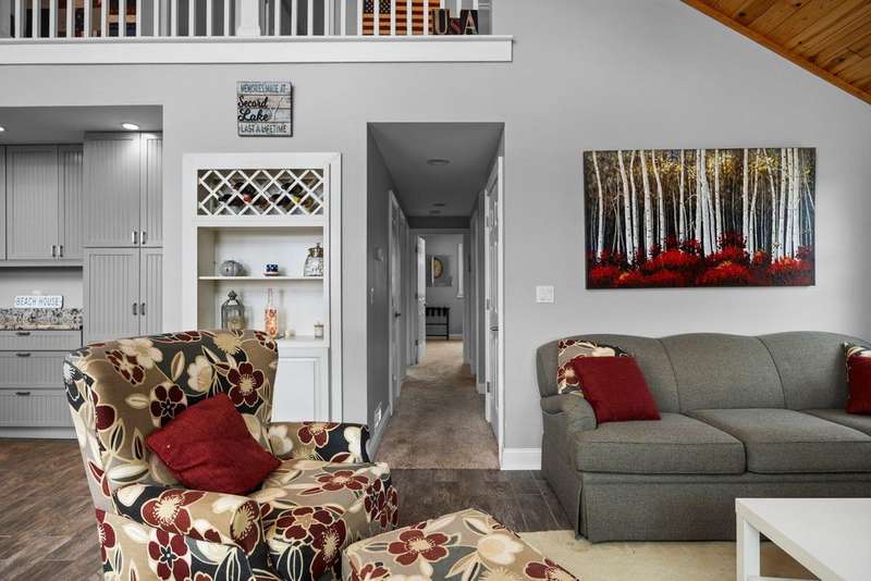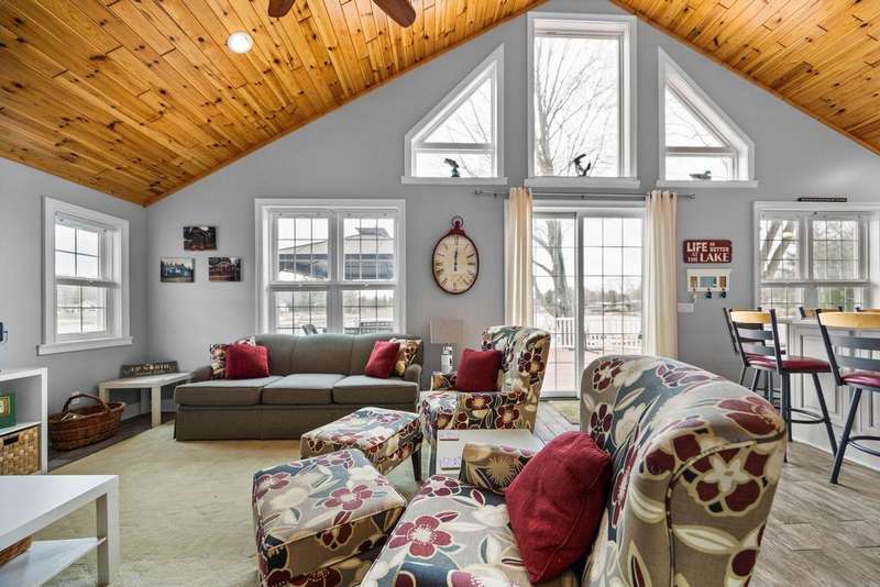 Looking for that slice of waterfront paradise on Secord Lake, well, look no further! This stunning 2450 sq. ft. home offers a perfect blend of luxury and tranquility. On 80' of prime waterfront, this property provides a breathtaking view of Secord Lake. Step inside and be captivated by the spacious and meticulously designed interior with open floor plan and many windows to let in tons of natural sunlight. The heart of the home is the stunning kitchen, featuring a custom-built quartz island with seating for 10 and a wine chiller, a true masterpiece for culinary enthusiasts and those who love to entertain. Granite countertops and high-end cabinets compliment it beautifully. On the main floor, you will also find two bedrooms, two full bathrooms, and the laundry room. Head on upstairs the spacious loft that overlooks the kitchen and living room. This space could be used as an office, sitting room, or additional sleeping room, the options are endless. You'll also find two more bedrooms for your guests. The exterior of the home is equally impressive, designed to maximize enjoyment of the picturesque surroundings. You'll love your very own SANDY BEACH area that is perfect for sunbathing, swimming or simply relaxing by the water's edge. The 30' x 18" deck provides a beautiful vantage point to take in the lake view, complete with a gazebo and fire bowl for those cozy evenings. Whether hosting indoor dinner parties or outdoor barbecues, this home is geared for entertaining. The seamless flow between the indoor and outdoor spaces ensures that you and your guests can enjoy the best of both worlds. In 2017 this home had a major overhaul. New kitchen, updated bathrooms, roof, furnace, air conditioner, vinyl siding, spray foam insulation, and crawl space encapsulation. This stunning home on Secord Lake is more than just a place to live, it's an experience waiting to be embraced. With its modern updates, luxurious amenities, and stunning waterfront views, it offers a lifestyle of comfort, elegance, and endless enjoyment.