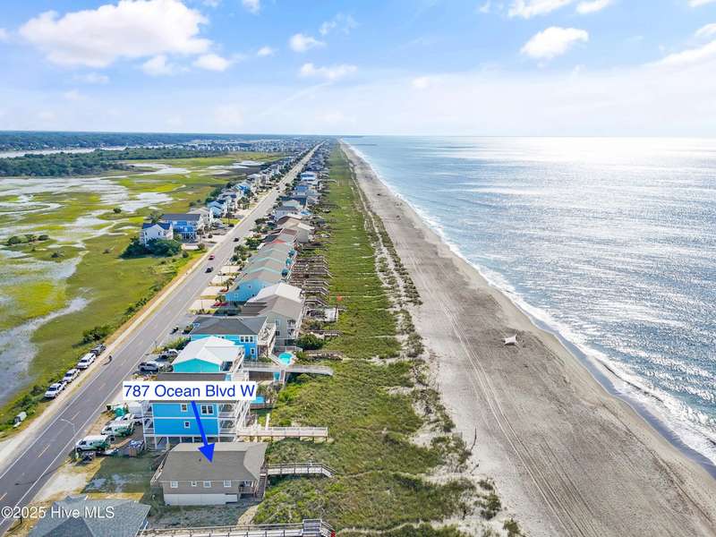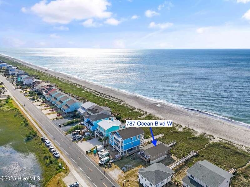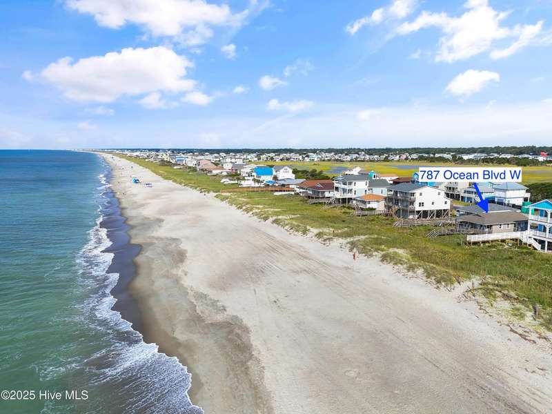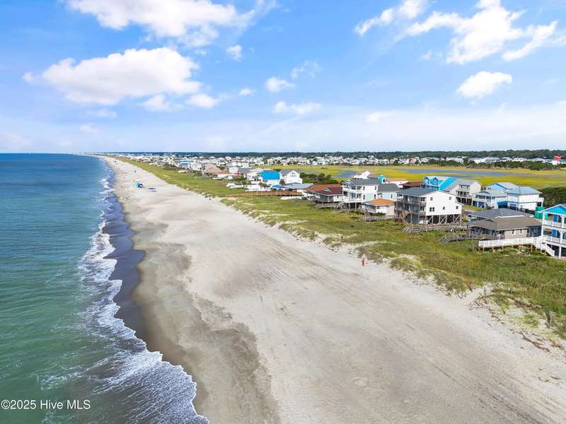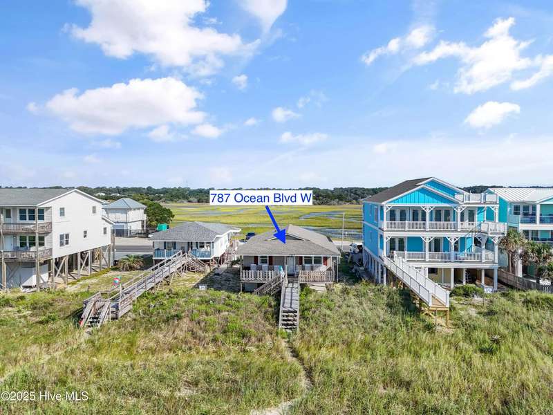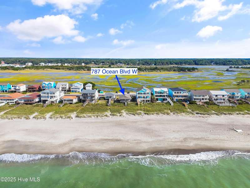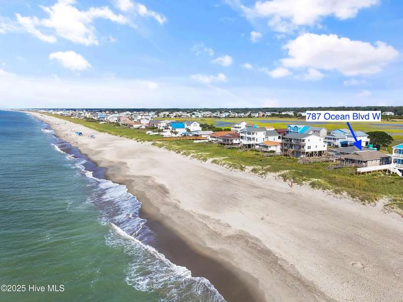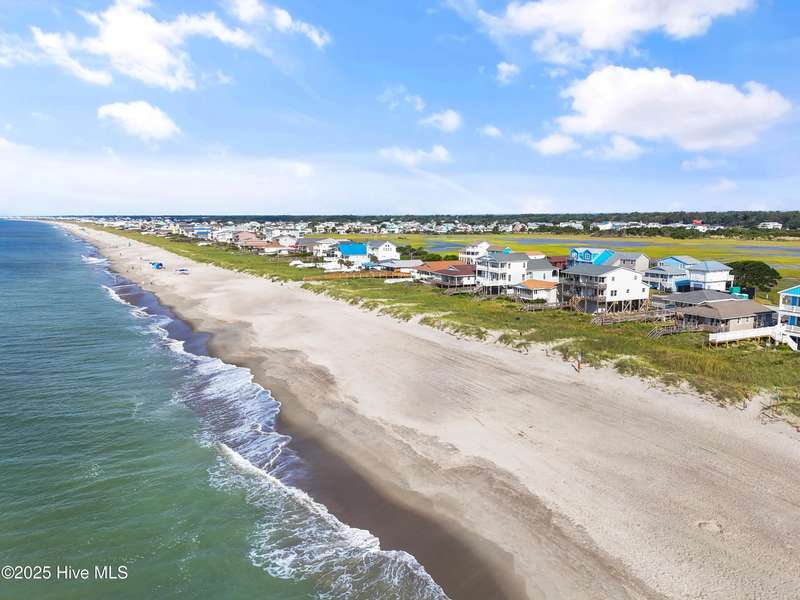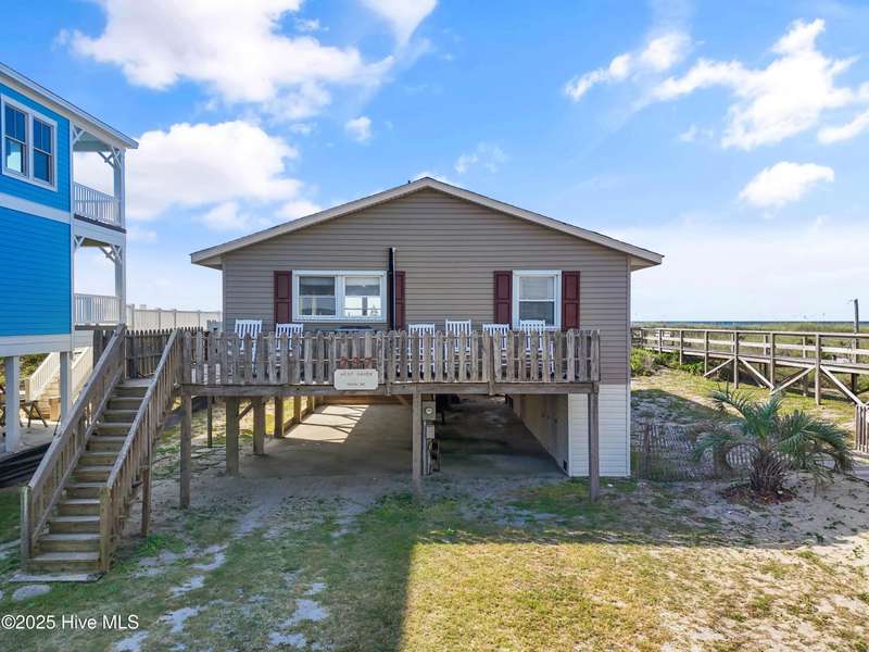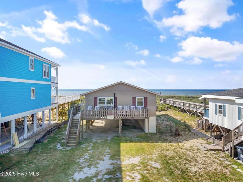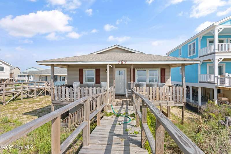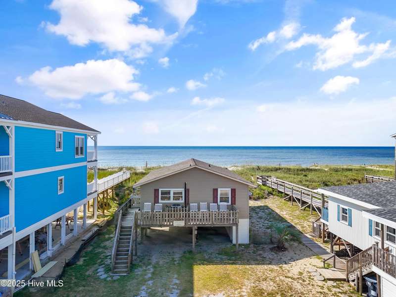 Welcome to West Haven, your next Oceanfront retreat on award winning Holden Beach. This classic beach cottage features 3 bedrooms, 1 full bath and just over 1,000 sq. ft. of coastal charm. Take in breathtaking views from multiple angles- sip your morning coffee on the front porch overlooking the serene marshland, or unwind with an evening cocktail on the back deck with panoramic views of the Atlantic. Inside, you will step in to open concept living and kitchen areas offering ample space for the whole family to relax after a day at the beach. Multiple windows on all sides let in an abundance of natural light. Even better? It is offered fully furnished (with just a few exceptions), making it move-in ready - perfect for personal enjoyment or as a turnkey investment. On the ground level you will find an outdoor shower, two storage rooms, and an additional half-bath. Holden Beach is one of the few South-facing beaches, providing stunning sunrises and sunsets year-round. Holden Beach is also centrally located between Wilmington and Myrtle Beach. Oceanfront property at this price will not last long, come and take a look for yourself today!