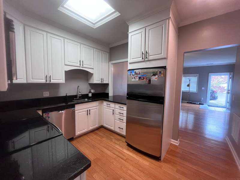 Charming East Norwalk Condo - Move-In Ready! Discover this adorable, turn-key 1-bedroom, 1-bath end unit perfectly situated in the heart of East Norwalk. Enjoy an unbeatable location just steps from shopping, Whole Foods, Stew Leonard's, great restaurants, beaches and only minutes to major highways and Metro-North for an easy commute. Step through your private entrance into a welcoming tiled foyer that opens to a bright, spacious living room with beautiful hardwood floors. The updated kitchen features granite countertops, stainless-steel appliances, a breakfast bar, and generous cabinet space - ideal for cooking or entertaining. The modernized bathroom offers a stylish new vanity, lighting, fixtures, tile flooring, and a chic shiplap accent wall. Additional highlights include a full-size washer and dryer, one reserved parking spot (#14), low common charges, and a private 12'x7' storage room in the basement. Why rent when you can own? This East Norwalk gem delivers style, comfort, and u