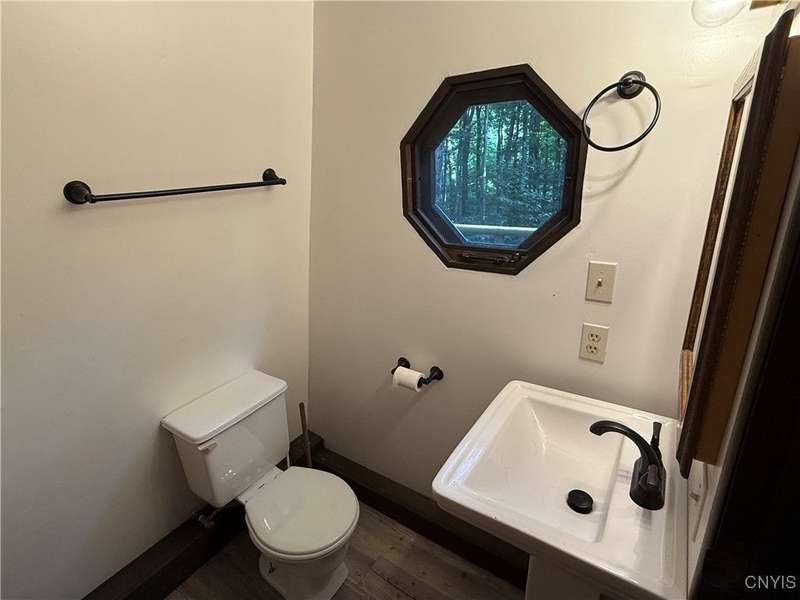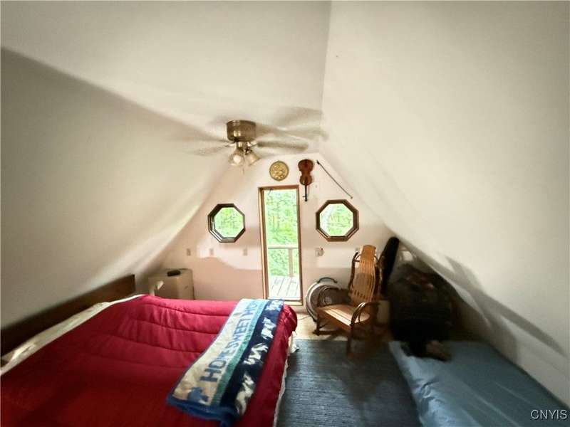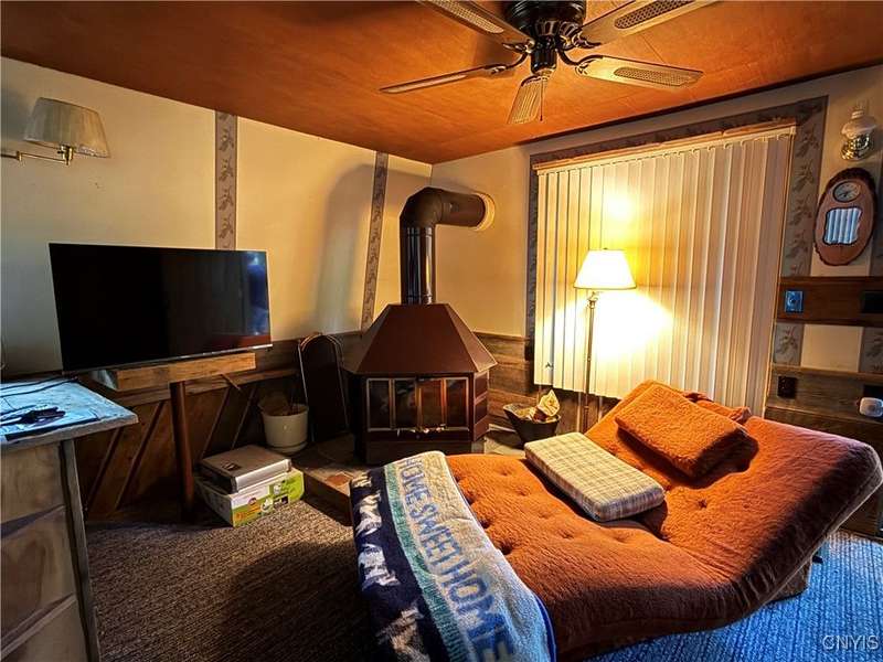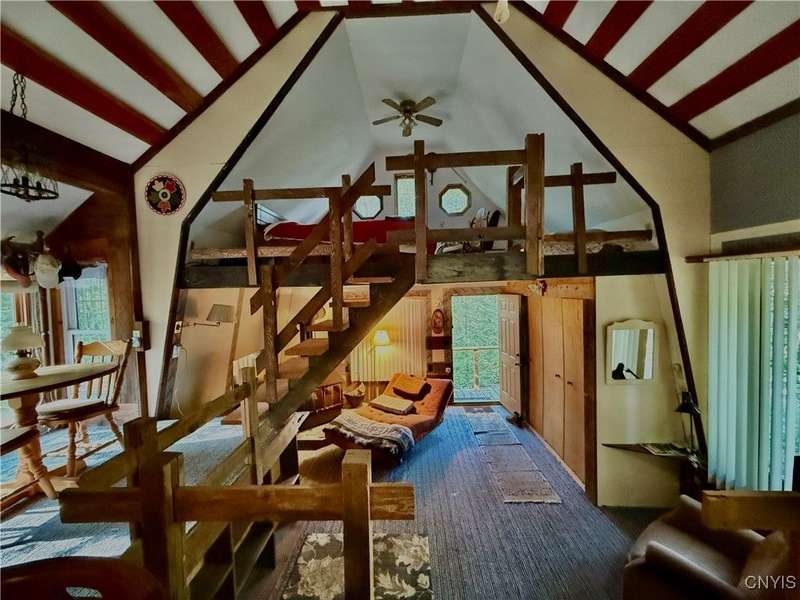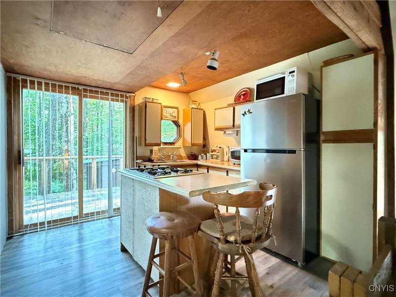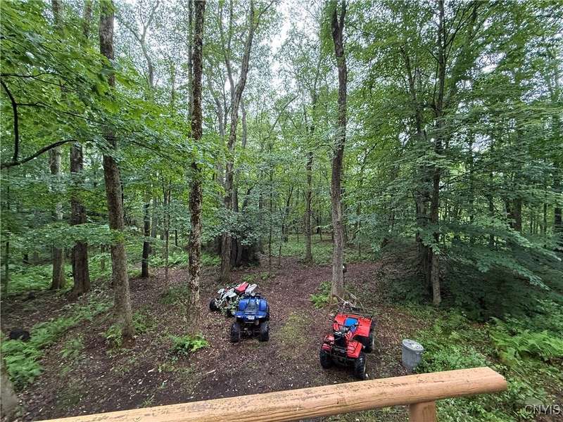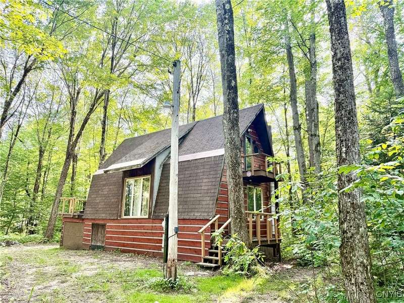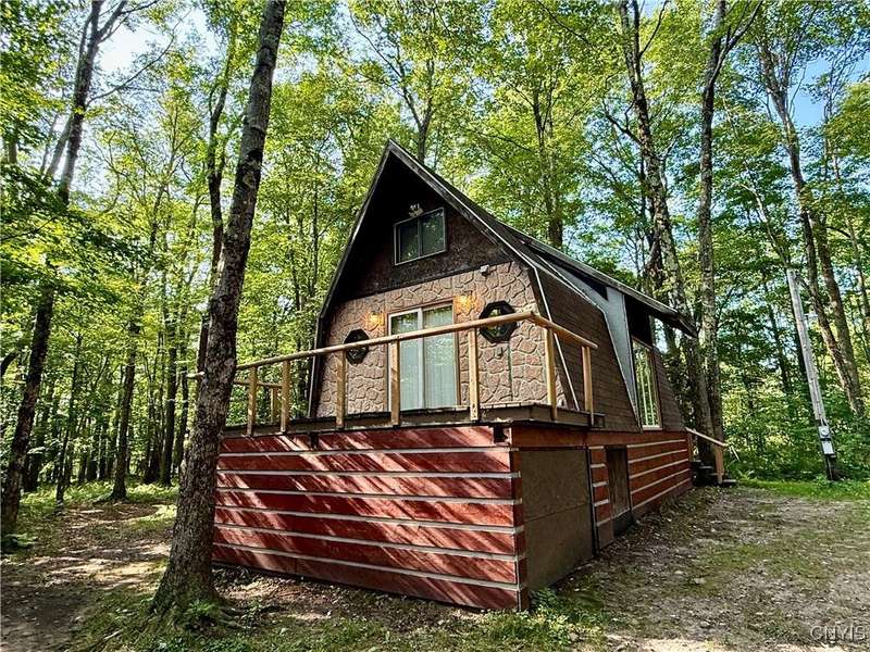 Escape to the woods! Located on 4 beautifully wooded acres, this is the perfect year-round get-away style "camp"! Whether it's snowmobiling the Tug Hill Plateau or riding the side-by-side to the Salmon River for fishing, this location is perfect for it all- even with trails on your own property! And it's just a stone's throw from the North Osceola Line Brook State Forest, too. Inside is a cozy living room with a wood stove and good storage at the entry. A few steps up and you're in the kitchen with small island, all appliances, and a cute little dining area in front of the windows. Off the kitchen is a bid deck overlooking the yard- perfect for a grilling and lounging. Back inside there's a full bath on that floor and there's even a laundry nook! Upstairs on one side has a sleeping loft and the other side has a pull-down stair option for another bedroom option or great storage. There's a small basement area with e workbench and good access to the utilities and the foundation. It's currently supplied by a spring fed tiled well, but there is a drilled well on the property. The seasonal road is plowed (past the cabin) and accessible in winter. If you're looking for a truly unique get-away with some of the best outdoor recreation Central New York has to offer, this home just might be it!