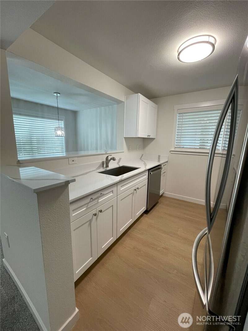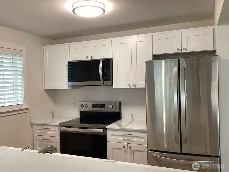 Welcome to the Bluegrass 3 bedroom 2 bath home. This updated home boasts a modern kitchen equipped with stainless steel appliances, quartz counters, and soft close cabinets and drawers. The kitchen also features countertop seating, perfect for casual dining or entertaining. The living room, complete with a cozy wood fireplace, opens up to a patio that includes a storage closet. New carpet and paint throughout. The home comes with w/d for your convenience. You'll have access to a range of amenities including a pool, hot tub, and gym. The home comes with two parking spots. Water, sewer, and garbage are included. 1 small pet under 25lbs or less, subject to restrictions.