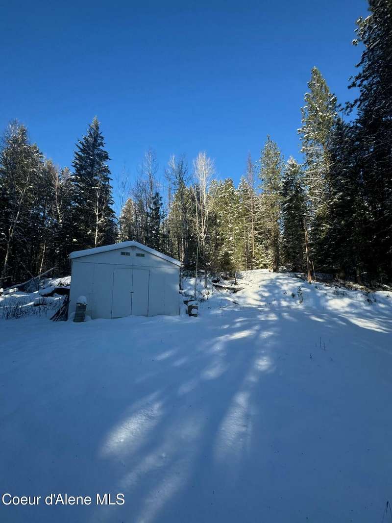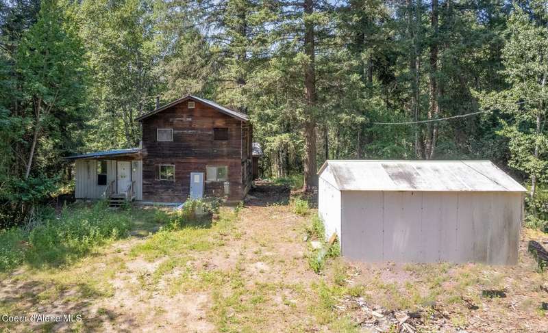 Charming cabin on almost 5 acres just 25 min outside of town! Ideal for a peaceful retreat or rural homestead living. Enjoy being close to nature and all North Idaho has to offer! Main floor is open concept with wood stove, stainless steal fridge, and vintage kitchen sink. One bedroom connected to the laundry and main floor utilities with one bathroom complimented by a highly sought after claw foot tub! Second floor is roughed in with 2 spacious bedrooms. Detached garage or shop!
