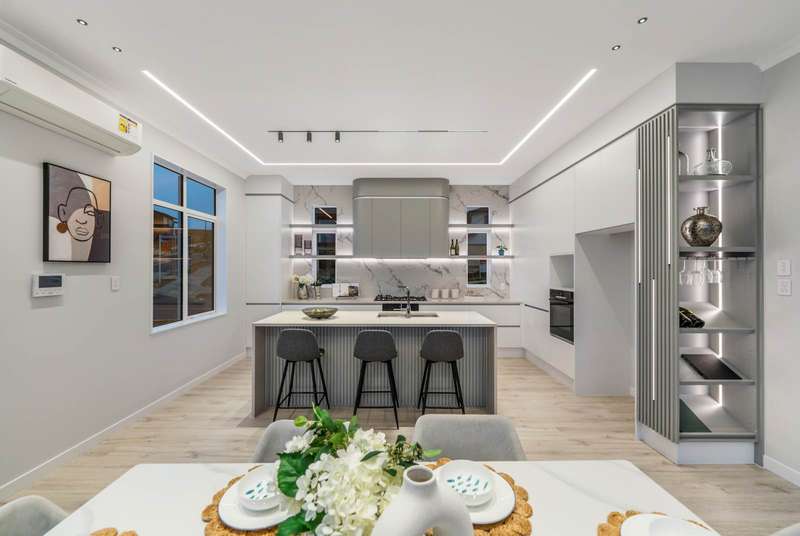 Welcome to this stunning 5-bedroom, 3.5-bathroom family home situated on a desirable corner site in Millwater. Thoughtfully designed with multiple living areas, excellent indoor-outdoor flow, and granny potential, this home is perfect for modern family living. Upon entry, you're welcomed into a bright and spacious open-plan kitchen, dining, and living area that flows effortlessly onto a sunny balcony, offering beautiful views. The stylish kitchen is equipped with quality appliances, ample storage, and a functional layout ideal for family gatherings and entertaining. A separate toilet adds extra convenience. This level also provides granny potential, featuring two bedrooms, a separate living lounge, a bathroom, and a private laundry—perfect for extended family or guests. A private decking area creates an additional space for relaxation. Upstairs, two well-sized bedrooms share a modern bathroom and a separate living area, ideal for a cozy family space or kids’ retreat. The master bedroom is a true sanctuary, complete with a luxurious walk-in wardrobe, an ensuite, and a study nook—perfect for those working from home or needing a quiet space. Nestled in the heart of Millwater, this home offers easy access to everything a modern family needs, including top schools, parks and walkways, shopping and dining, and a short drive to Orewa Beach and surrounding coastal areas for a relaxed lifestyle. Contact us today to arrange a viewing and secure this exceptional opportunity!