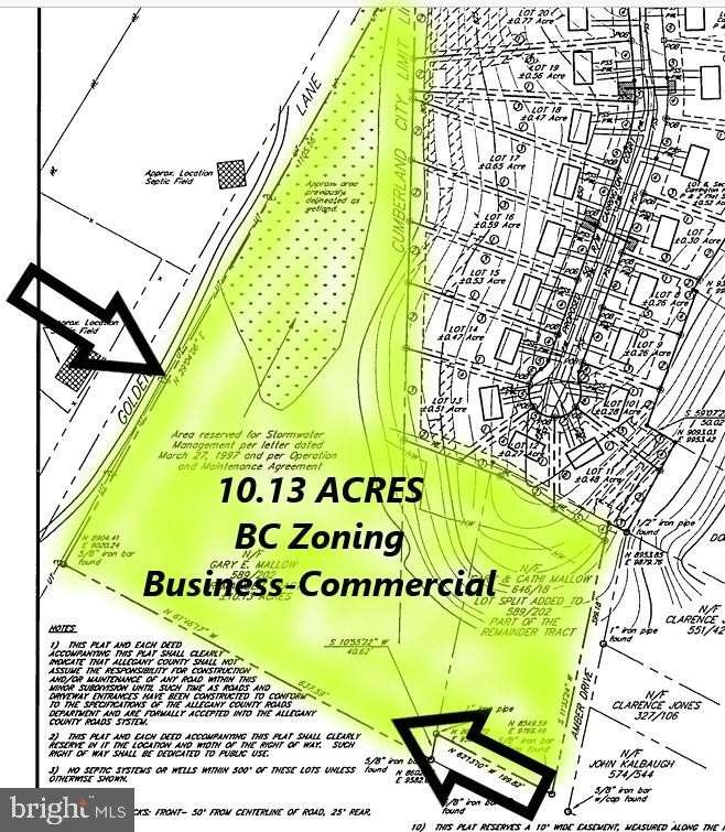 City of Cumberland Business-Commercial Zoning with public water sewer available. Natural Gas nearby. 10.13 acres with frontage on Golden Lane Plus Access from Country Club Road on 40' ROW all cash offers considered!