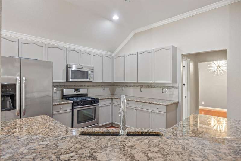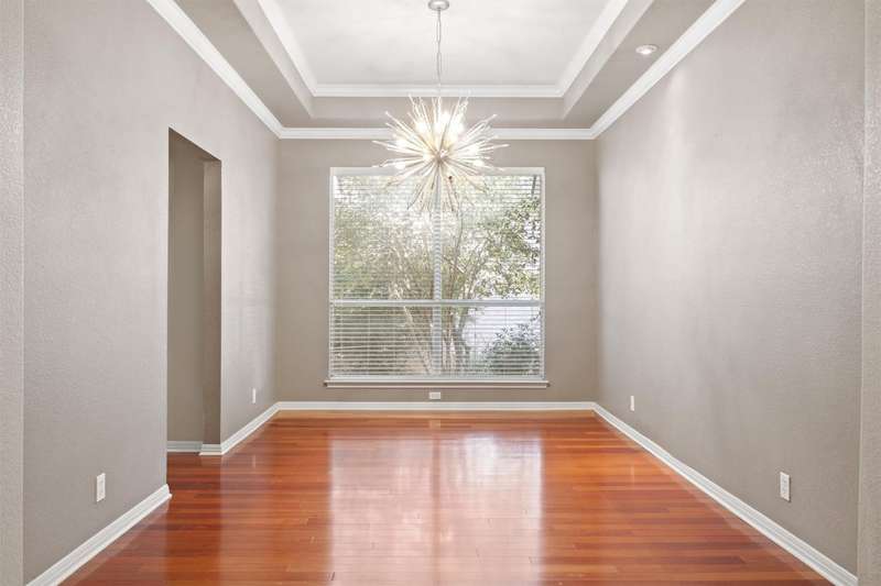 Set on a shaded corner lot in the sought-after Legend Oaks community, this inviting single-story home offers 4 bedrooms, 2 baths, and 2,359 sq. ft. of open, light-filled living space. Beautiful wood flooring flows through the main areas, complemented by high ceilings and classic finishes. The kitchen opens seamlessly to the living and dining areas, creating a natural space for gatherings. The spacious primary suite features a walk-in closet, soaking tub, and separate shower, while the secondary bedrooms provide flexibility for guests or a home office. Step outside to a large covered patio and private backyard framed by mature trees, ideal for outdoor entertaining or quiet evenings at home. Enjoy a two-car garage, excellent curb appeal, and a prime location near shopping, dining, and major thoroughfares.