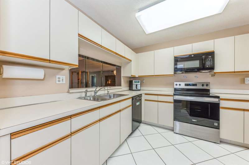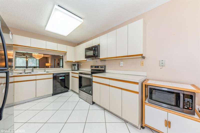 Freshly Painted 2nd-Floor Watersedge Model with Elevator Access. This oversized 2BR/2BA condo in Lakes of Delray's 55+ gated community offers serene lake views from a glass-enclosed lanai. Conveniently situated next to the residents gate for easy access. Enjoy tile flooring throughout, wood-look flooring in the primary suite & a spacious eat-in kitchen with pantry, new stove and microwave, and ample storage. The primary bedroom includes a large walk-in closet and en-suite bath. Full-size laundry room with extra space, 2021 A/C. Offered unfurnished and furnished for easy move-in-ready appeal.Building has passed its milestone inspection and features fully funded reserves for 2025.Enjoy a vibrant resort-style lifestyle with a clubhouse, heated pool, spa, fitness center, tennis and more.