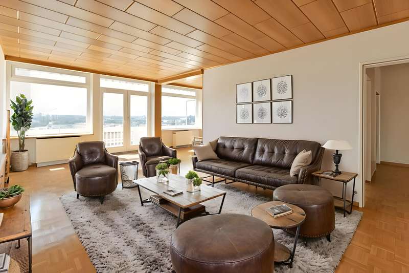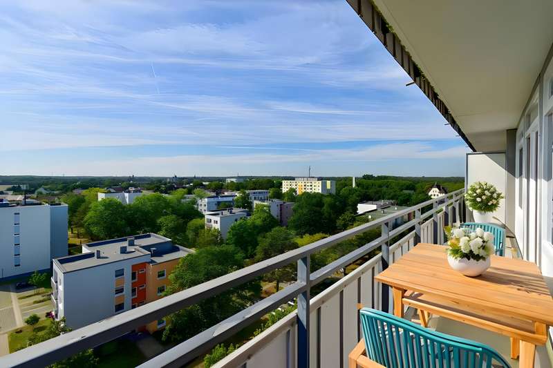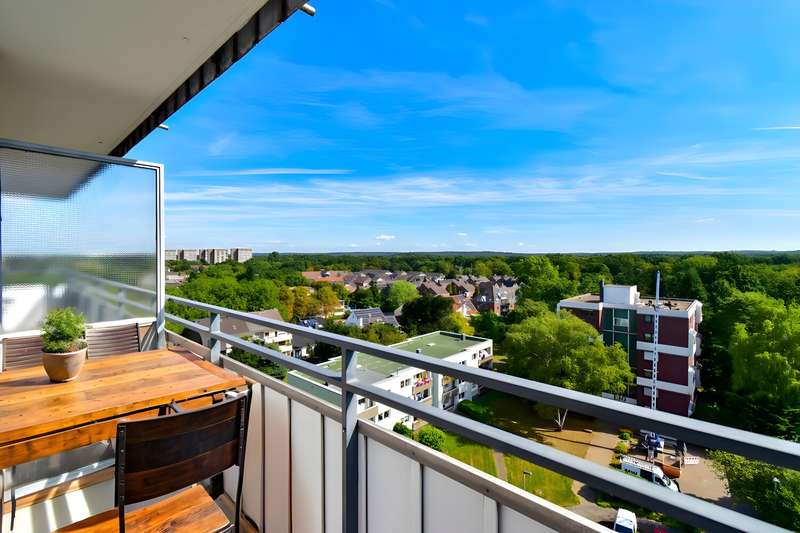 Welcome to an exceptional opportunity to acquire a spacious and light-flooded apartment in the sought-after south of Duisburg in Großbaum. With a living space of approx. 93 m², spread over 3.5 rooms, this property combines modern comfort, a well thought-out room layout and an excellent location close to the 6-Seen-Platte with a top infrastructure. The apartment is located on the 10th floor of a well-kept apartment building built in 1972. The well-kept staircase is easily accessible via two elevators. A large hallway welcomes you in the entrance area, offering plenty of space for a wardrobe and everyday living. A practical storage room provides additional storage space and increases living comfort. The space on offer includes a bright, open-plan living and dining area with access to the first balcony and offers a fantastic view over the south of Duisburg as far as Düsseldorf - a real added value for relaxing hours and social gatherings. The generous window fronts create a friendly atmosphere and underline the light-flooded living concept. The apartment offers two comfortable bedrooms that can be used flexibly as bedrooms, guest rooms or studies. Each bedroom has access to one of the 2 balconies. There are two separate bathrooms for your comfort: One is equipped with a bathtub - ideal for a relaxing bath in the evening, for example - while the other bathroom has a shower for a quick start to the day. The living room has a well-kept parquet floor, which further emphasizes the quality of living. The kitchen is functionally designed and offers plenty of space for cooking and eating together. Particularly noteworthy is the garage, which is already included in the price and ensures safe and convenient storage for your vehicle. The apartment meets the requirements of energy efficiency class "C". This not only ensures sustainable living comfort, but also moderately calculable ancillary costs. The location in the south of Duisburg is extremely popular due to its proximity to nature - especially the 6-Seen-Platte - as well as its excellent transport links. All shopping facilities, doctors, schools, kindergartens and public transport are just a few minutes' walk away. The excellent infrastructure guarantees short distances in everyday life. Summary: This attractively designed apartment with 3.5 rooms, two balconies and two bathrooms, parquet flooring and a garage offers you the ideal basis for comfortable living. See the benefits of this attractive property in Duisburg-Großenbaum for yourself during a viewing. We look forward to your inquiry!