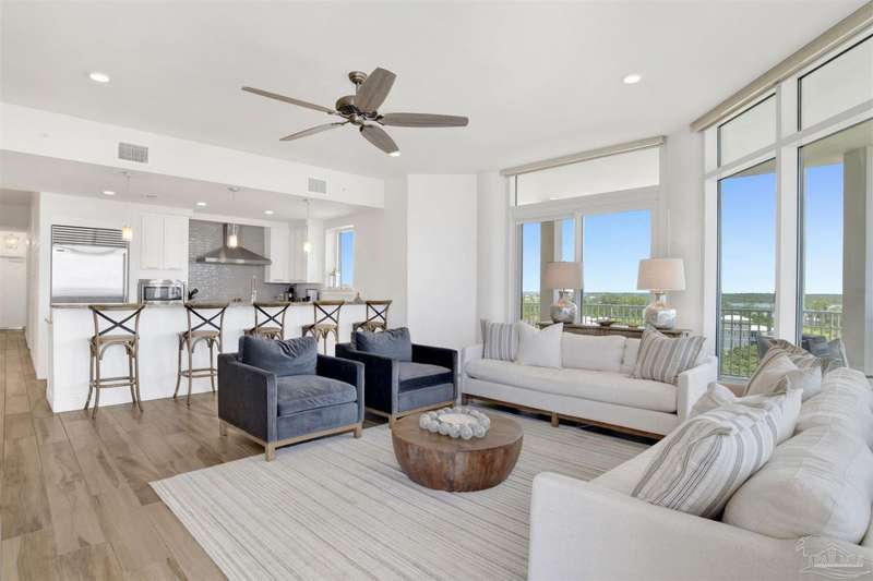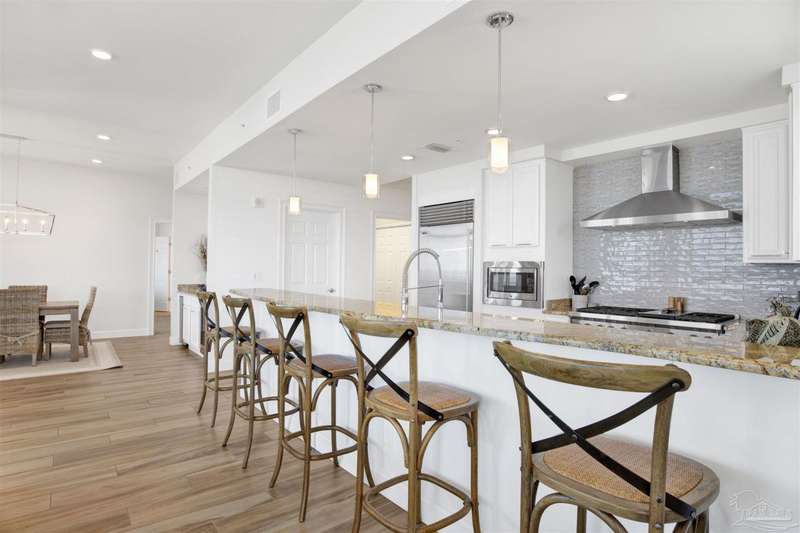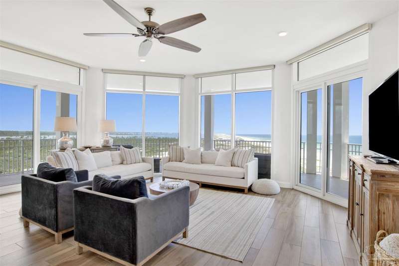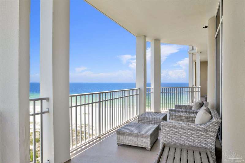 THIS RARE 5-BEDROOM, 6TH FLOOR CORNER RESIDENCE HAS BREATHTAKING, PANORAMIC VIEWS OVERLOOKING MILES OF PROTECTED COASTLINE AND THE GULF! ENJOY EXCEPTIONAL AMENITIES IN A TRANQUIL, LOW-DENSITY BEACHFRONT SETTING FAR AWAY FROM THE CROWDS. Vista del Mar has an irreplaceable location at the east end of the island of Perdido Key and borders over 5 miles of protected Gulf Islands National Seashore offering nature trails, bike paths, and unspoiled beaches for your enjoyment. This luxurious residence has been specially customized to a 5 BEDROOM/4.5 BATHROOM floor plan and comes fully furnished with assigned garage parking. This gem showcases impressive floor-to-ceiling windows, a generous balcony complete with gas grill, and stunning white ship lap accents throughout. The exquisite kitchen boasts granite countertops, high-end cabinetry, a Chef's kitchen featuring a Wolf�® range and chimney hood, a Sub-Zero�® refrigerator, and a wet bar equipped with ice maker and wine refrigerator. Luxurious guest suites are designed with spa-like bathrooms and ample walk-in closets. At Vista Del Mar, enjoy a secure, gated community entrance, designated garage parking, and climate-controlled owner storage at the amenity level. The grand lobby entrance offers various seating areas, custom artwork, and awe-inspiring views. High-speed elevators lead to climate-controlled lobbies. Indulge in the lavish outdoor pool area with a vast beachfront deck, hot tub, and covered outdoor seating. Experience the heated indoor pool with stunning water views. The owner's health club provides a fully-equipped fitness room, yoga studio, and massage treatment rooms. Residents can unwind in the club room with fireplace, bar, pool tables, and TVs. Surround yourself with lush landscaping, coastal breezes and WELCOME HOME TO LUXURY BEACHFRONT LIVING AT ITS FINEST!