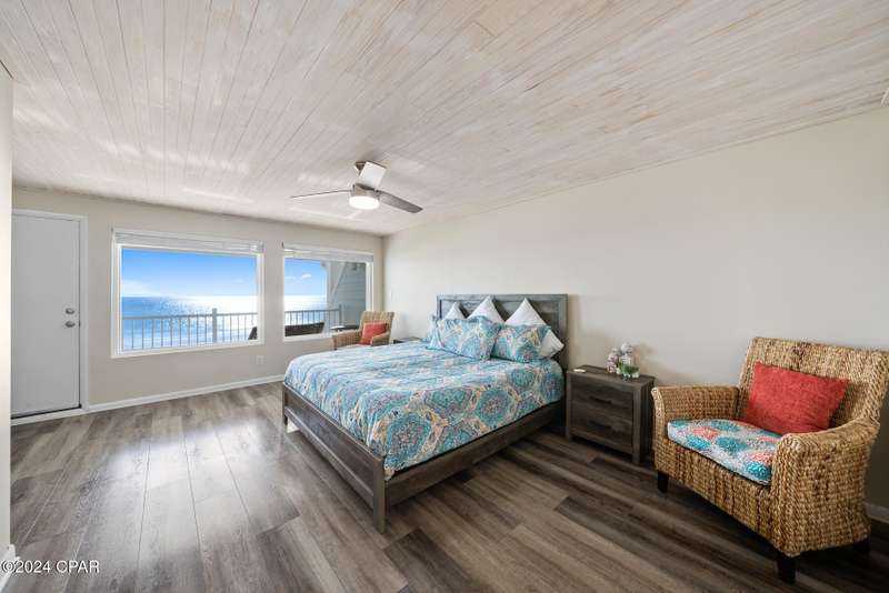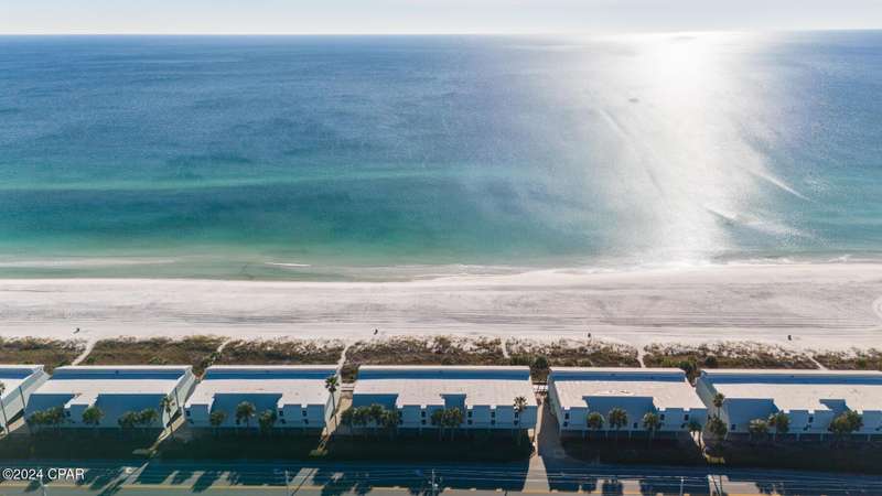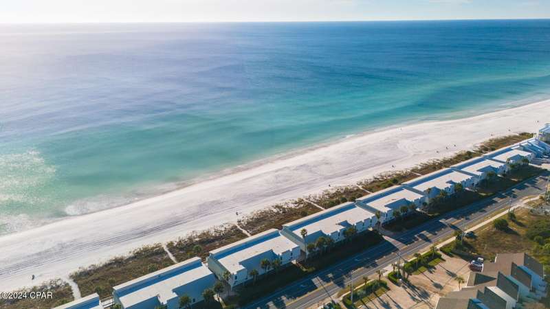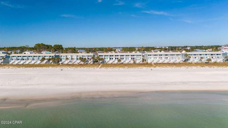 'CURRENTLY UNDER CONTRACT, SELLER WILL CONSIDER BACKUP OFFERS' Step into your dream coastal retreat with this stunning 3-bedroom, 3-bathroom Gulf-front townhouse with large private garage, just steps away from the soft white sands of Panama City Beach. With over 250 square feet of private balcony space, you'll enjoy breathtaking, unobstructed Gulf views from both the first-floor and second-floor balconies.The large first-floor balcony is perfect for relaxing or grilling with family and friends, while a private staircase offers direct access to the beach, no elevators required! This exceptional townhouse offers the feel of a beach house at a fraction of the price of a Gulf-front single-family home, all while maintaining the charm and tranquility of the West End.Inside, you'll find a spacious open floor plan with updated bathrooms and solid surface flooring throughout. The large master suite boasts its own private Gulf-front balcony, along with a generous walk-in closet.Recent updates include a completed exterior renovation with new Hardi plank siding, stairs, extended deck, hurricane impact windows, and a private parking garage.This rare opportunity to own a Gulf-front townhouse is perfect for those seeking a private, peaceful oasis with all the convenience of beach access. Schedule a showing today and take advantage of this incredible opportunity to own a piece of paradise. Historical rental information available upon request.